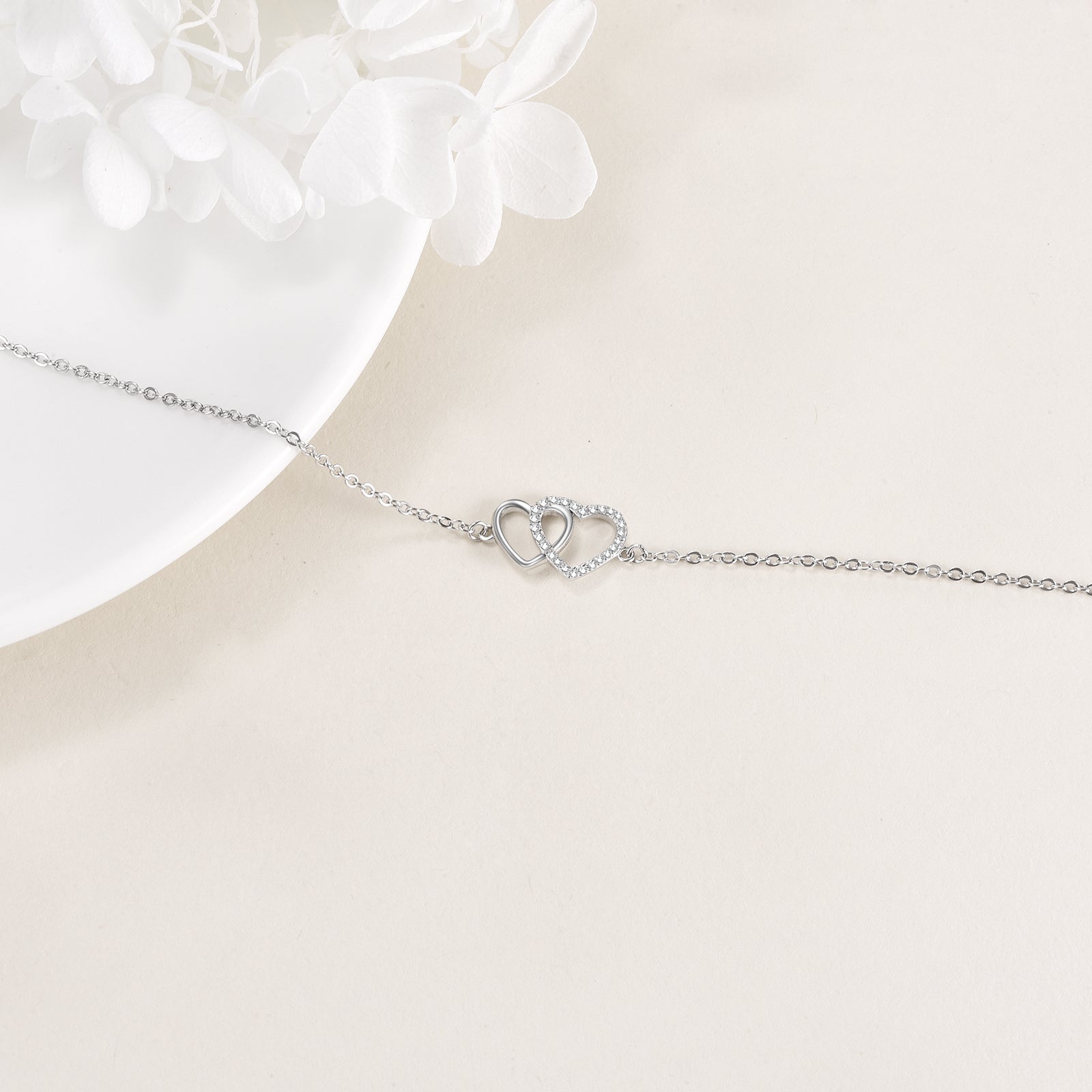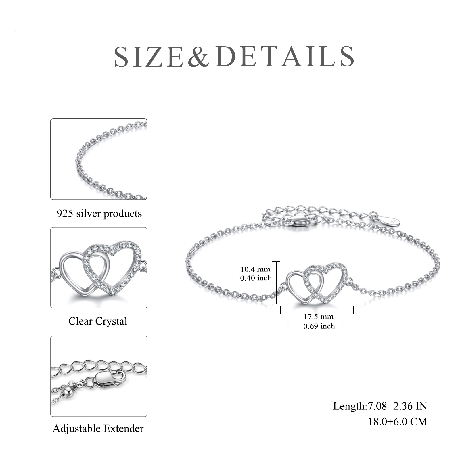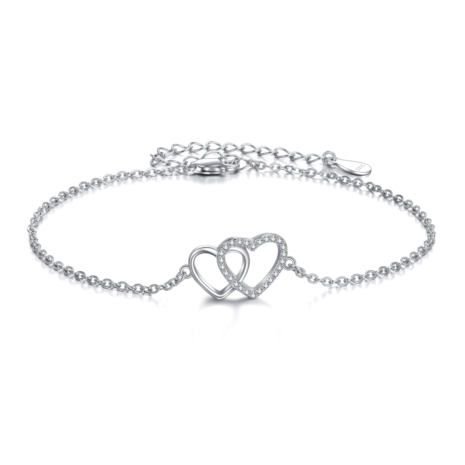 Sterling Silver Double Love Heart Bracelet Jewelry Gifts For Women
