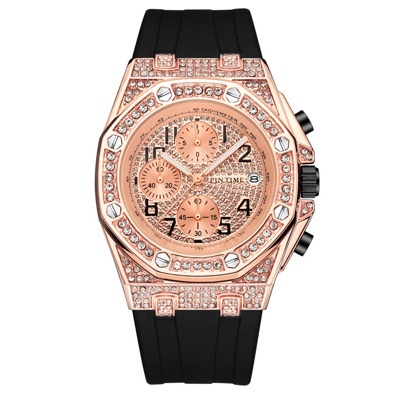 Vintage Personality Diamond-Studded Large Dial Chronograph Function