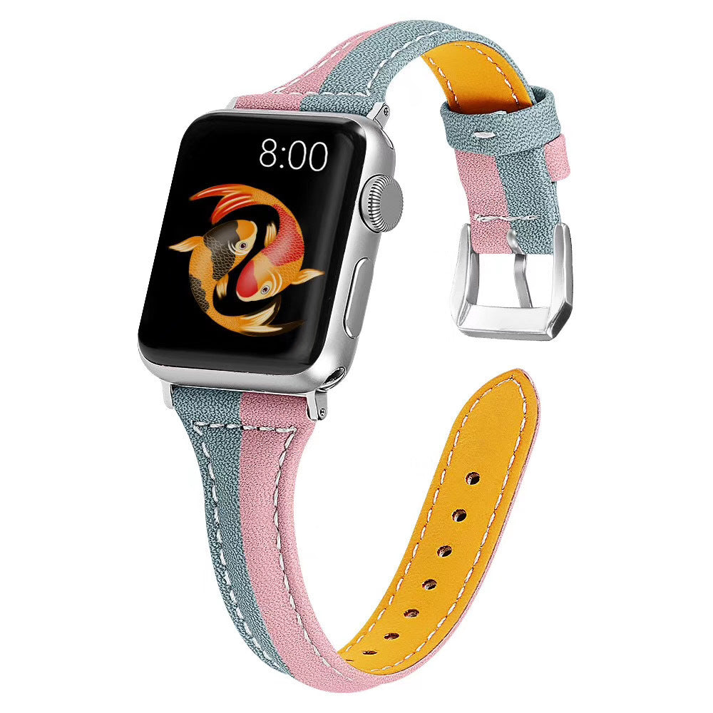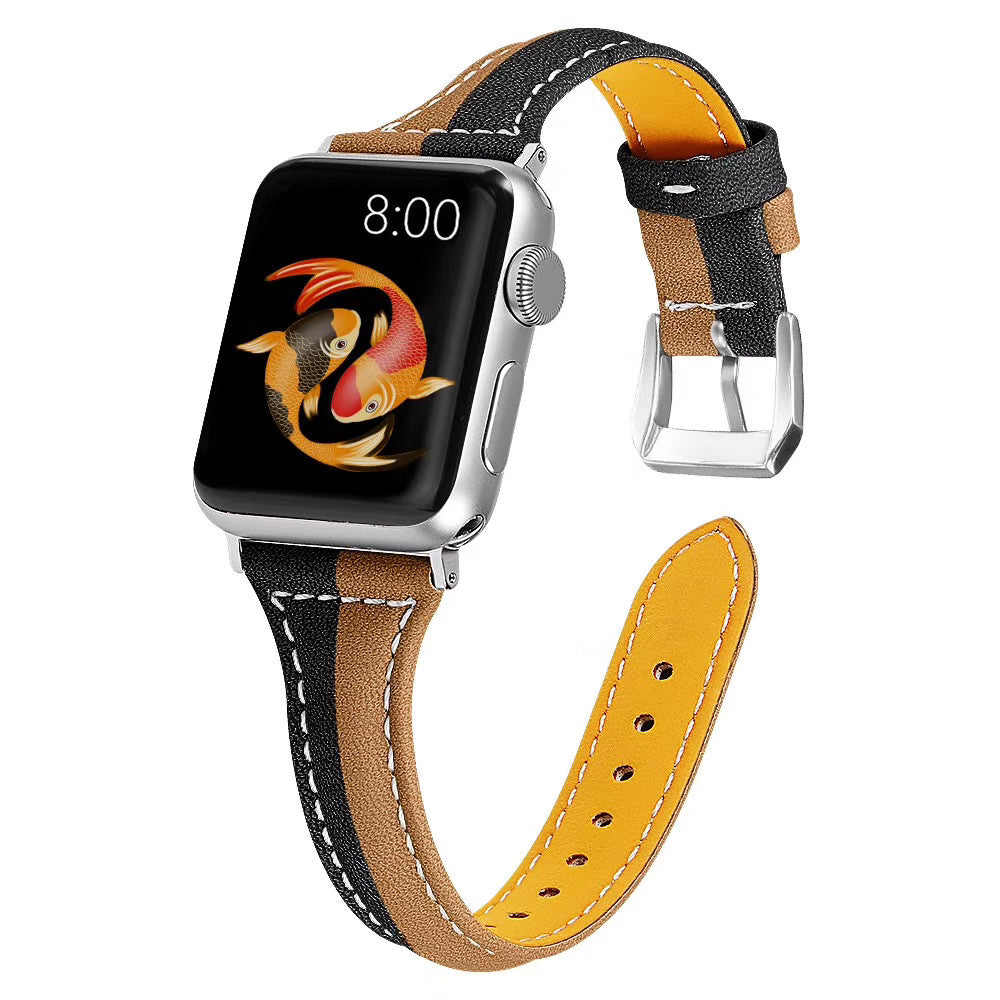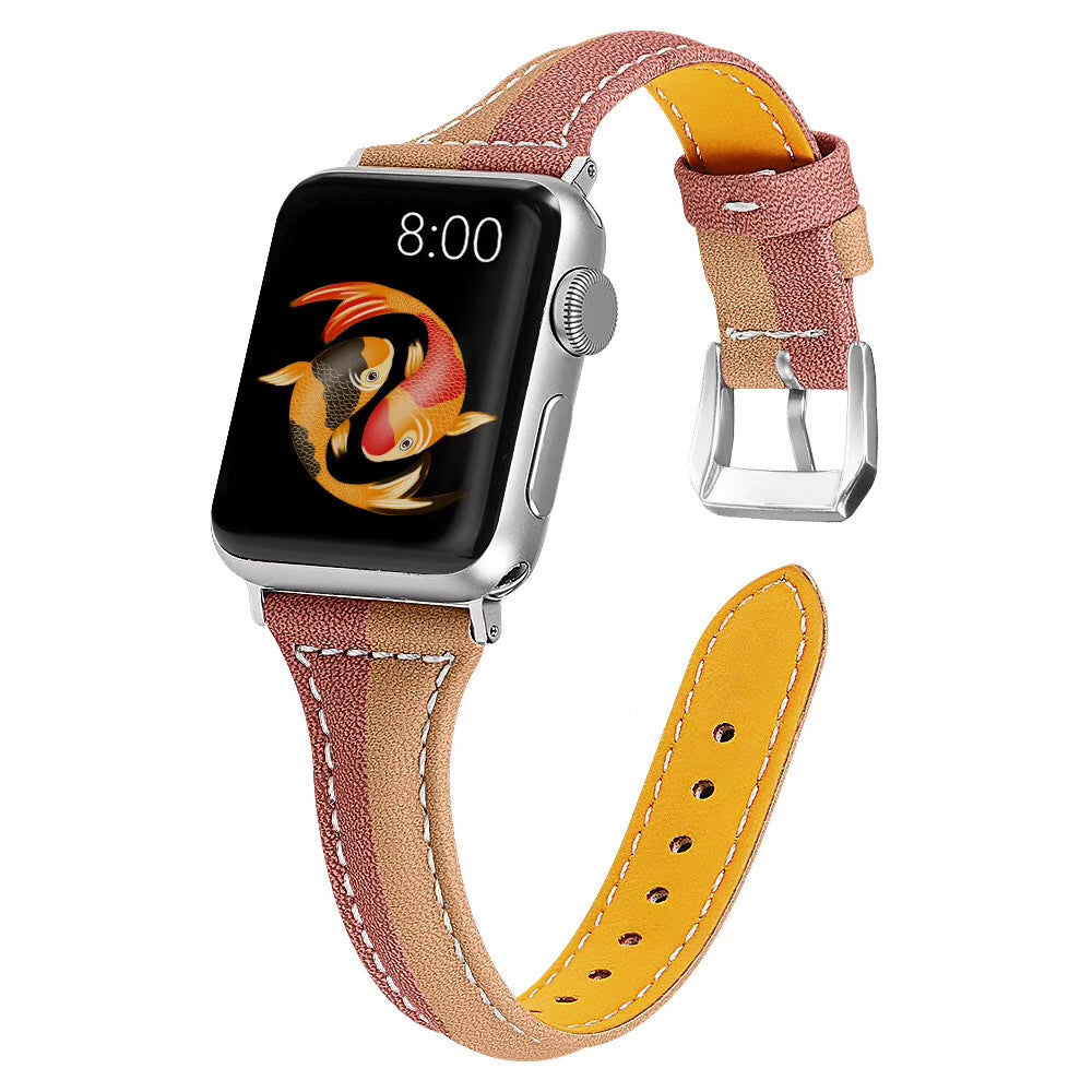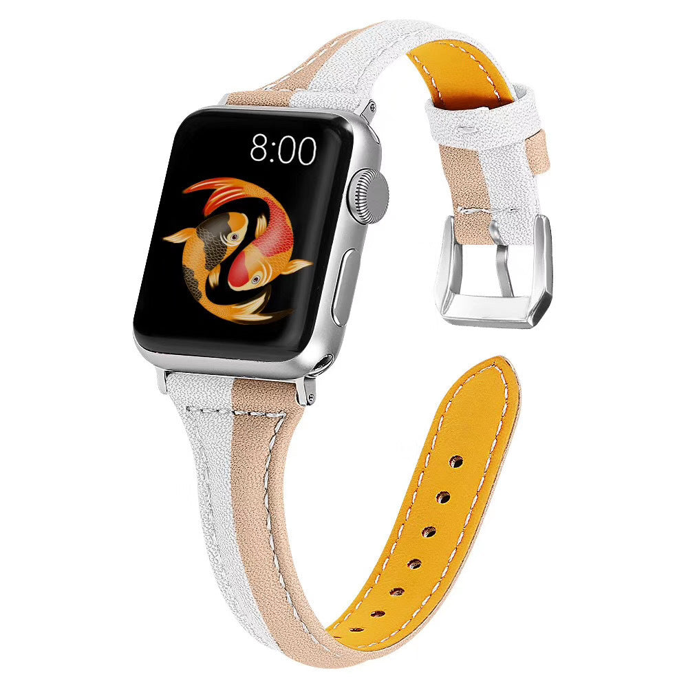 Watch Strap Contrast Color T-Shaped Leather Watch Strap 5Th Generation 6Th Generation Se Female