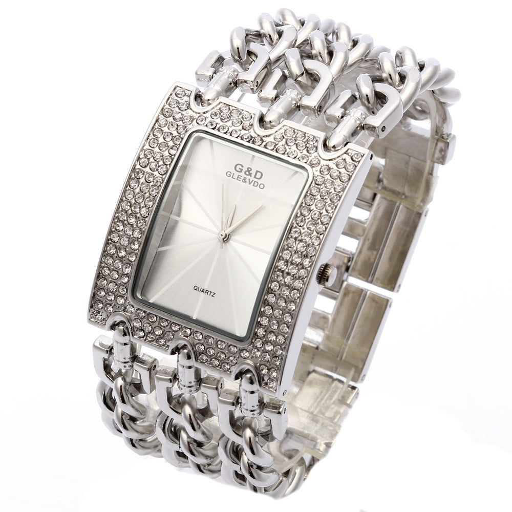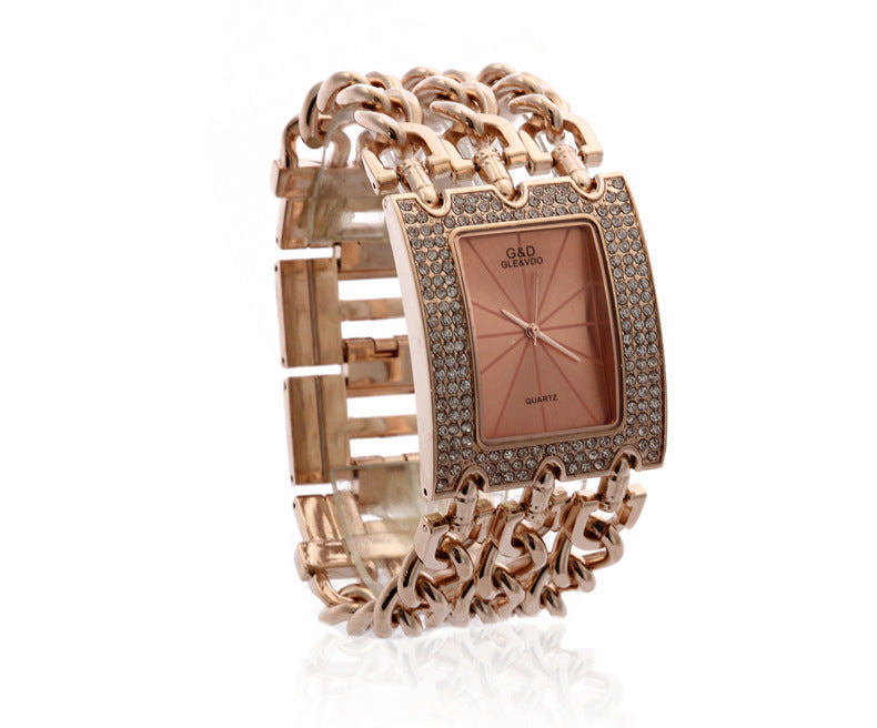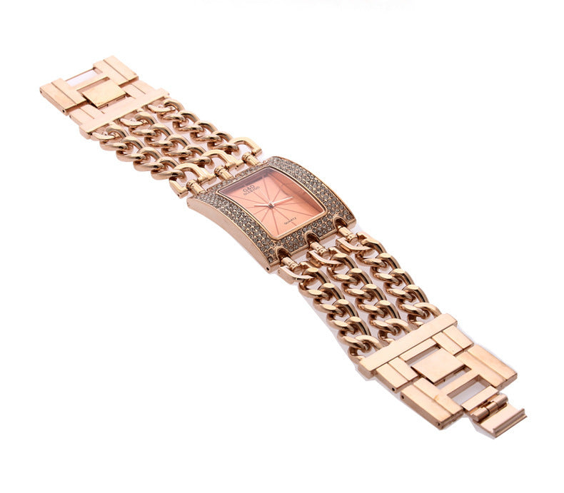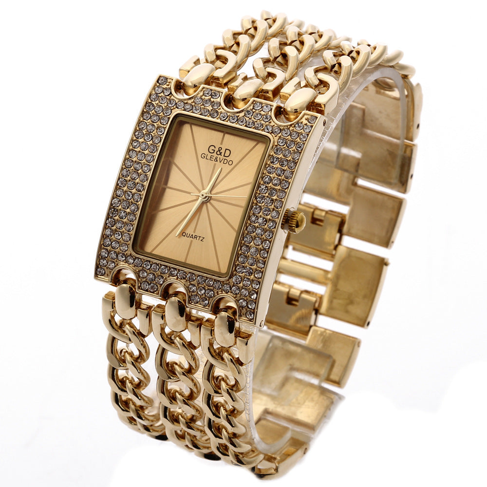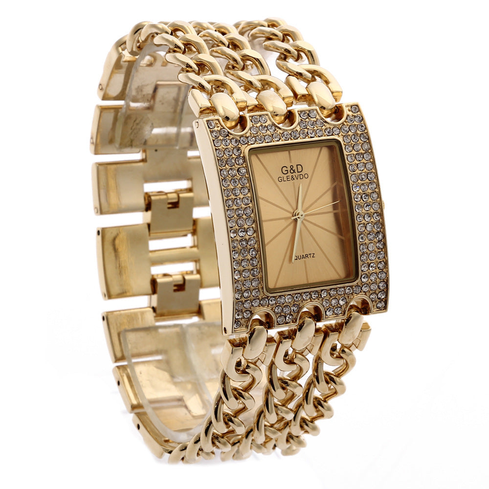 Women's Quartz Watch With Diamonds Three Links Gold And Rhinestones