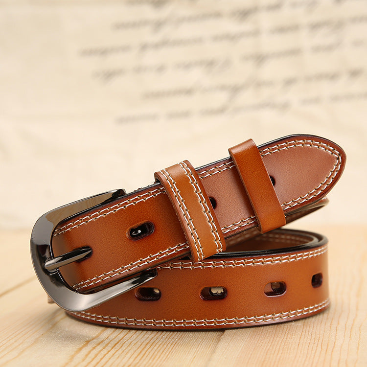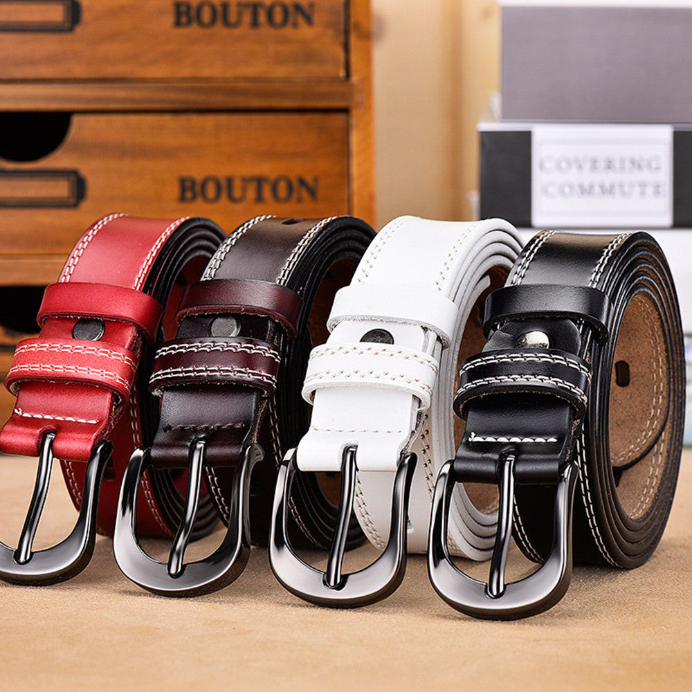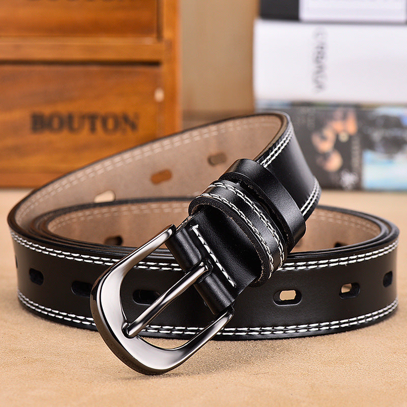 All-Match Women's Belt Simple Black Pin Buckle Width