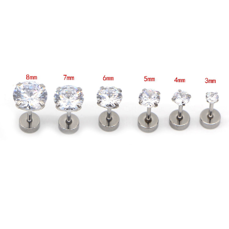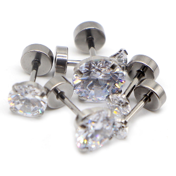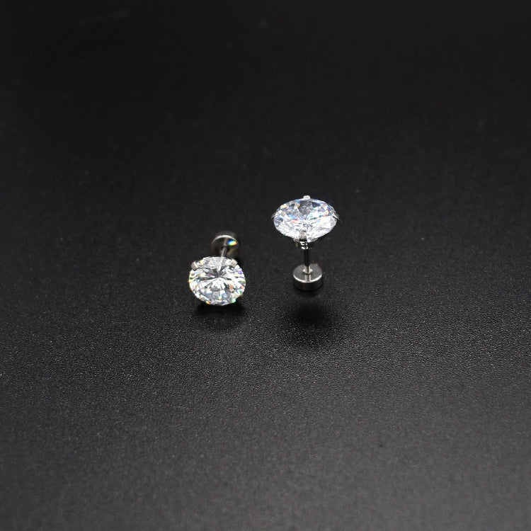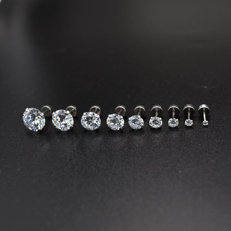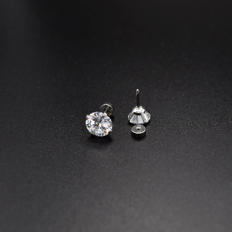 Titanium Steel Unisex Women Men Round Crystal Zircon Ear Studs Earrings