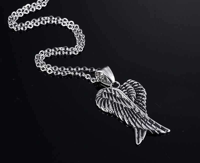 Stainless Steel Angel Wings Men's Pendant Necklace