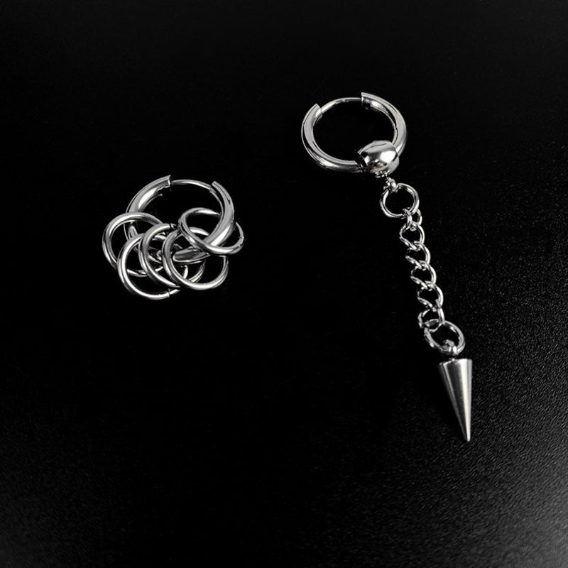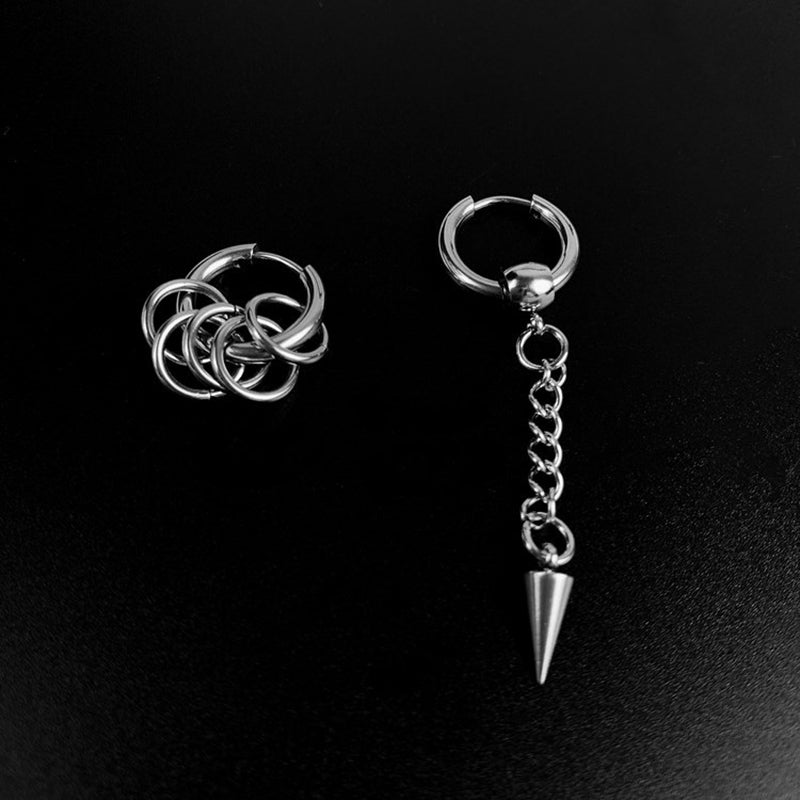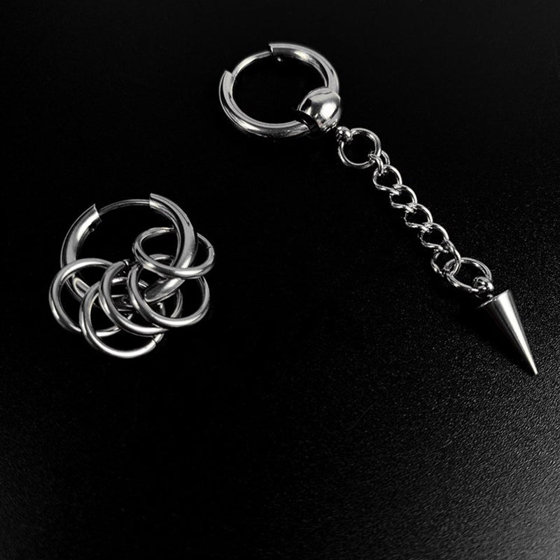 Titanium Steel Little Circle Arrow Tassel Pendant Asymmetric Earrings For Women Men