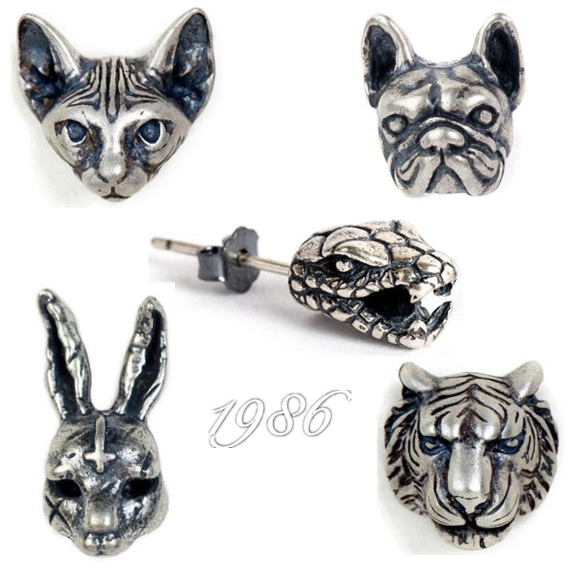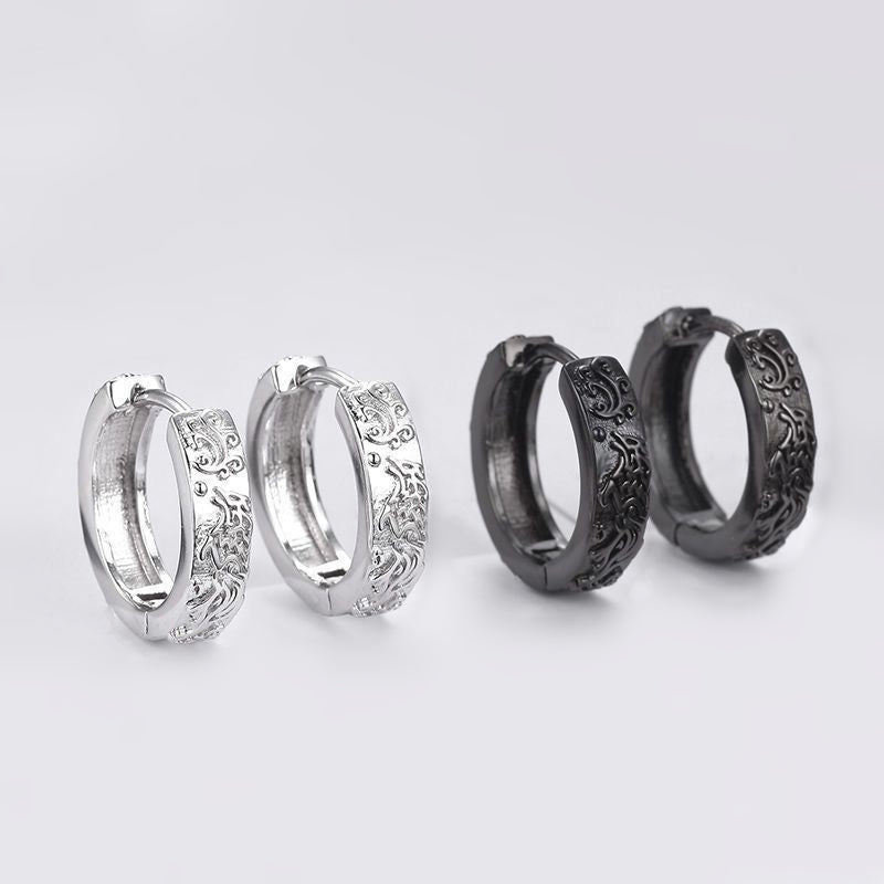 Vintage Black Proud Wolf Men Hoops Jewelry 925 Sterling Silver Earrings