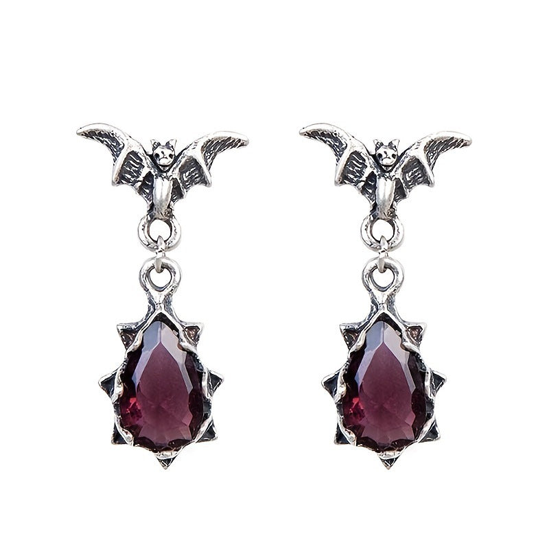 Silver Bat Earrings With Zircon Stones - Classic & Retro