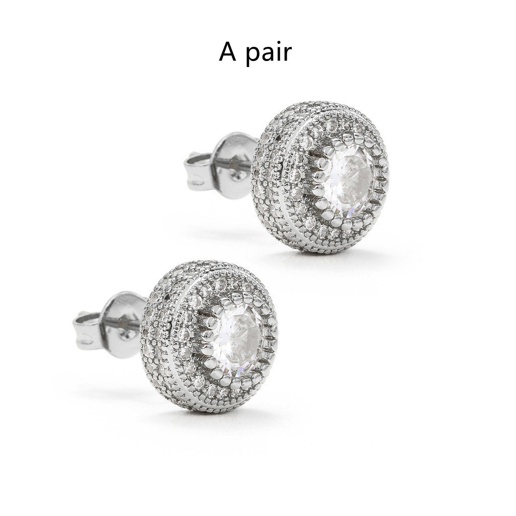 Hip Hop Round Full Zircon Earrings Rose Gold For Men and Women