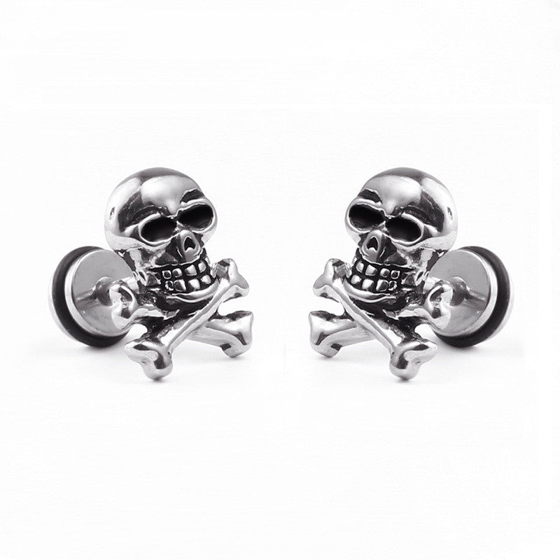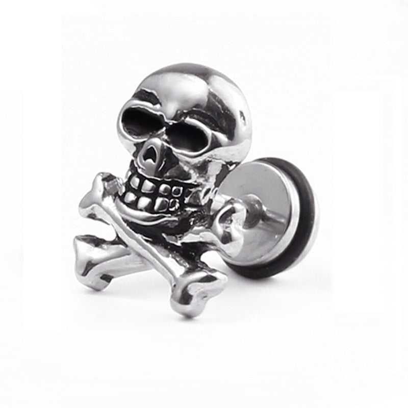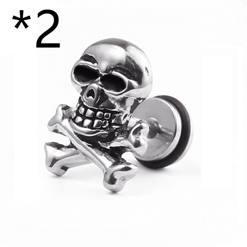 Cross-Border E-Commerce Youpin Titanium Steel Skull Punk Hip Hop Rock Tide Dumbbell Earrings Earrings Men and Women Personality Jewelry