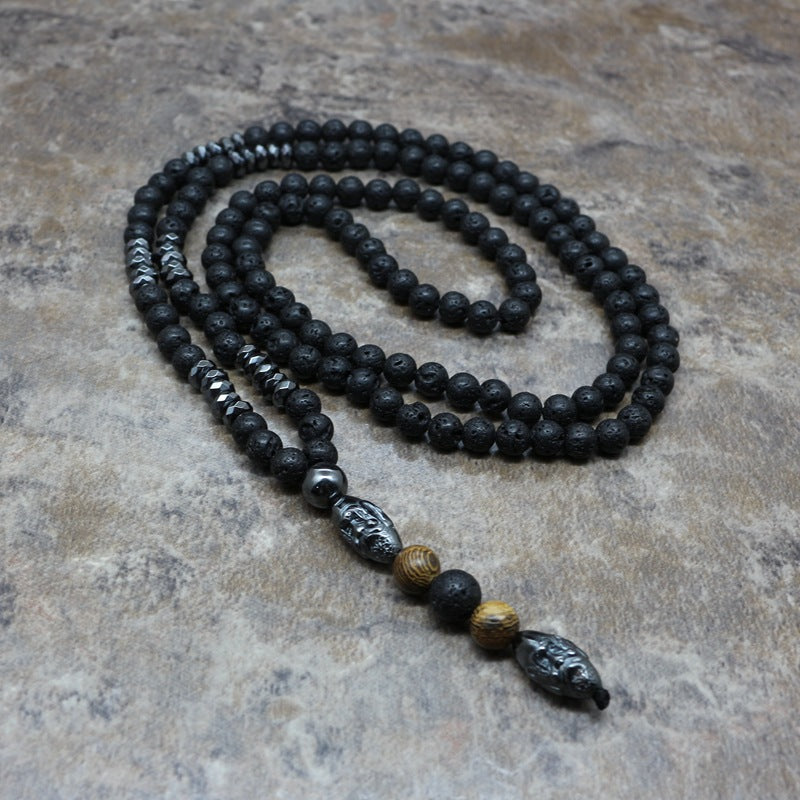 Men's Necklace 6Mm Lava Rock Pendant Men's Rosary Necklace