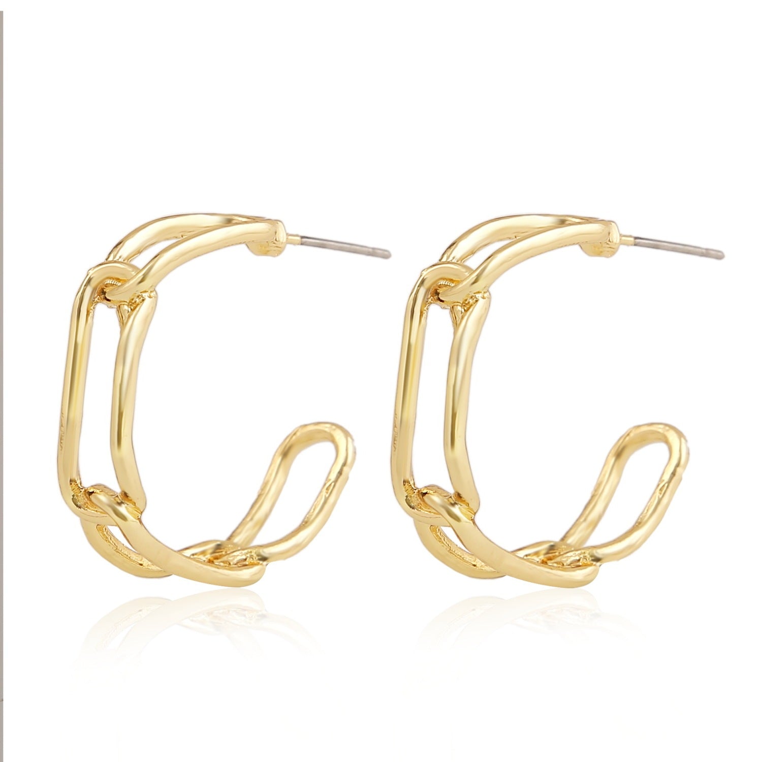 Women's Metal Ring Earrings Hollow Chain Stud Earrings