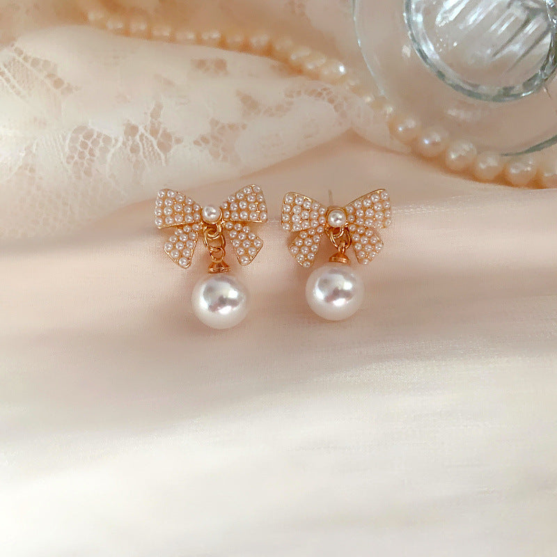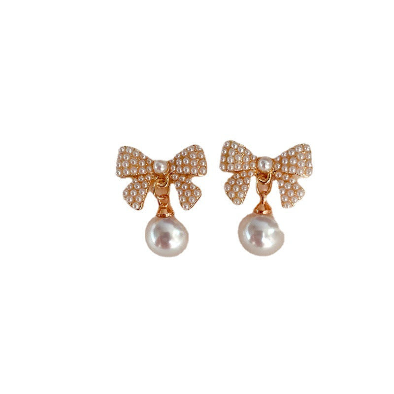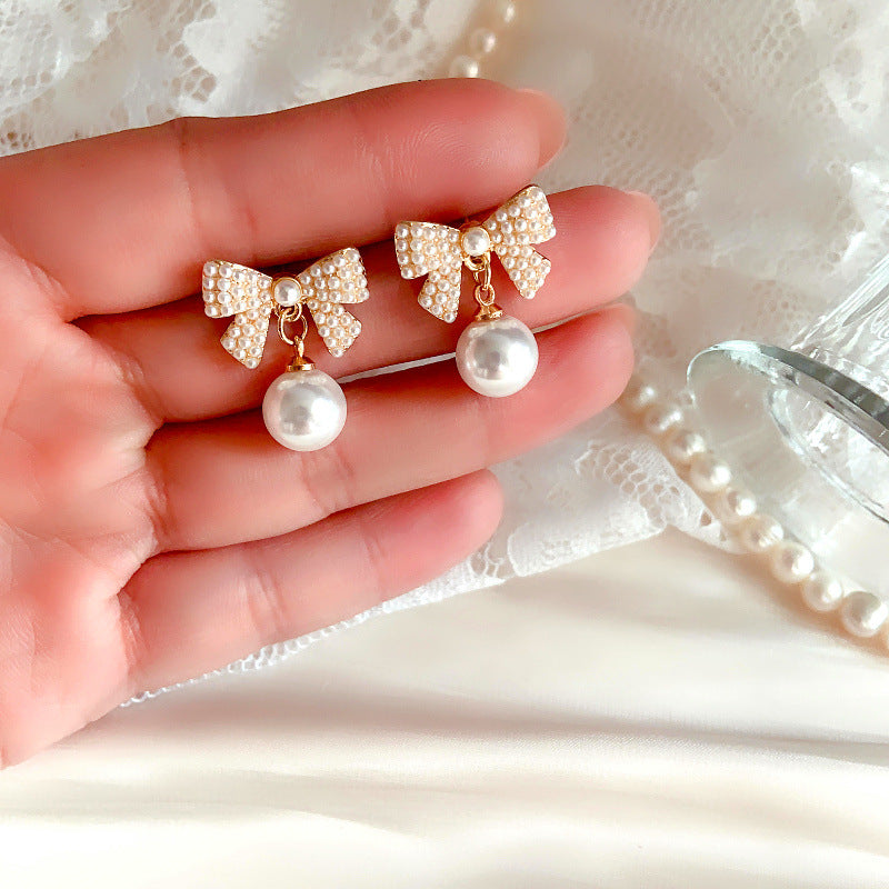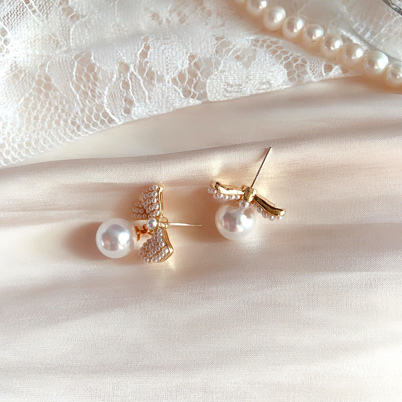 Bowknot Pearl 925 Silver Stud Earrings