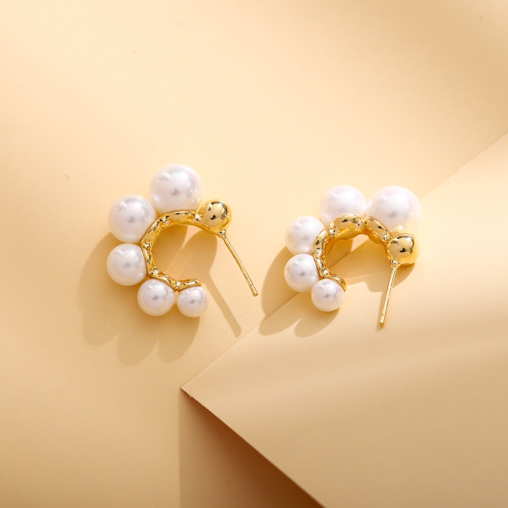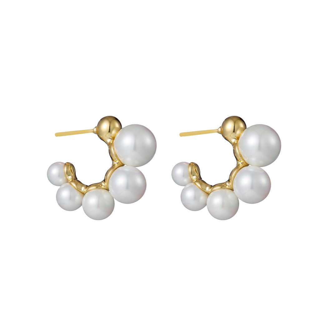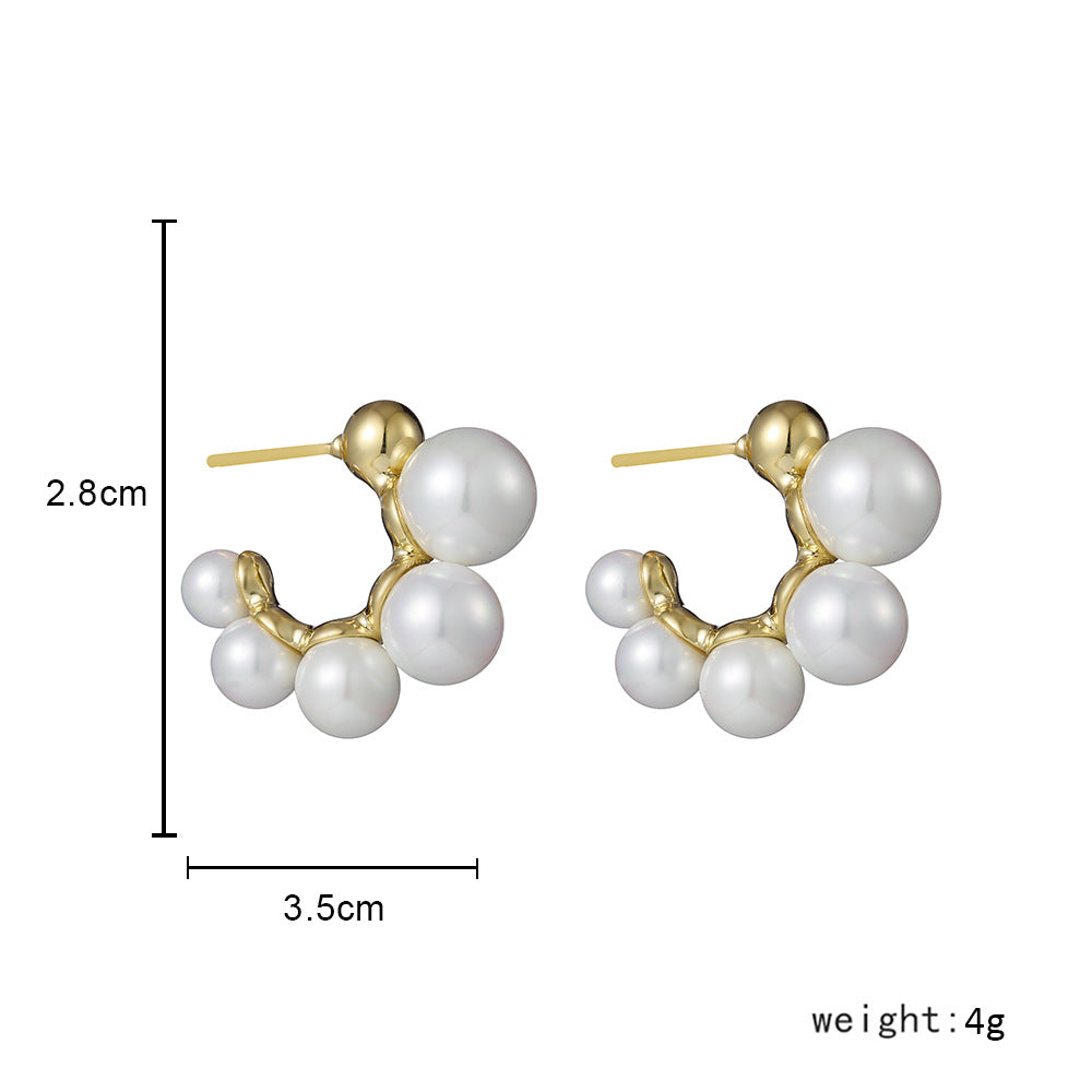 European And American Fashion Simple Letter C-Shaped Pearl Earrings