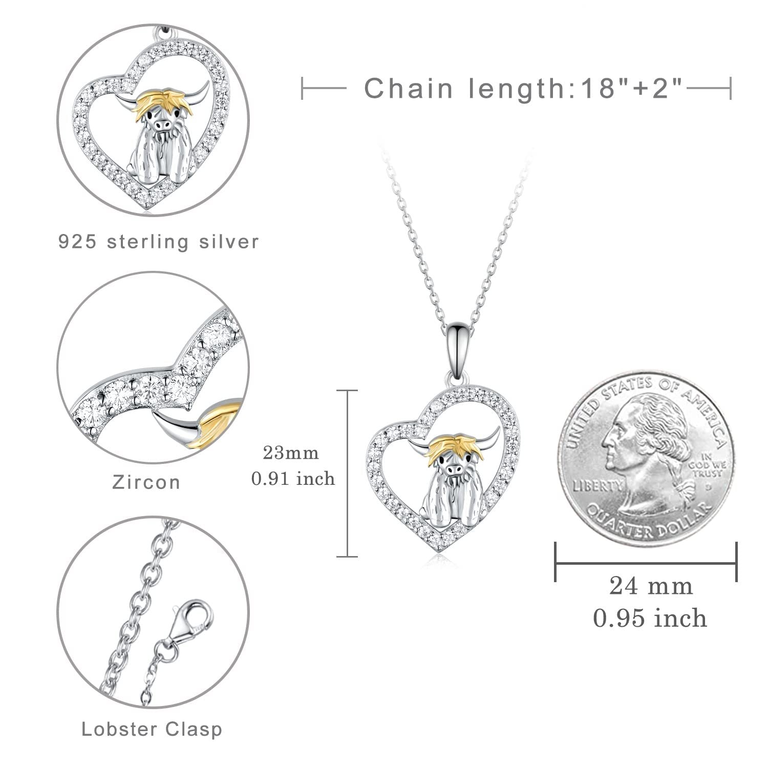 Highland Cow Necklace 925 Sterling Silver Heart Animal Necklace Animal Jewelry Gifts For Women Girls Daughter