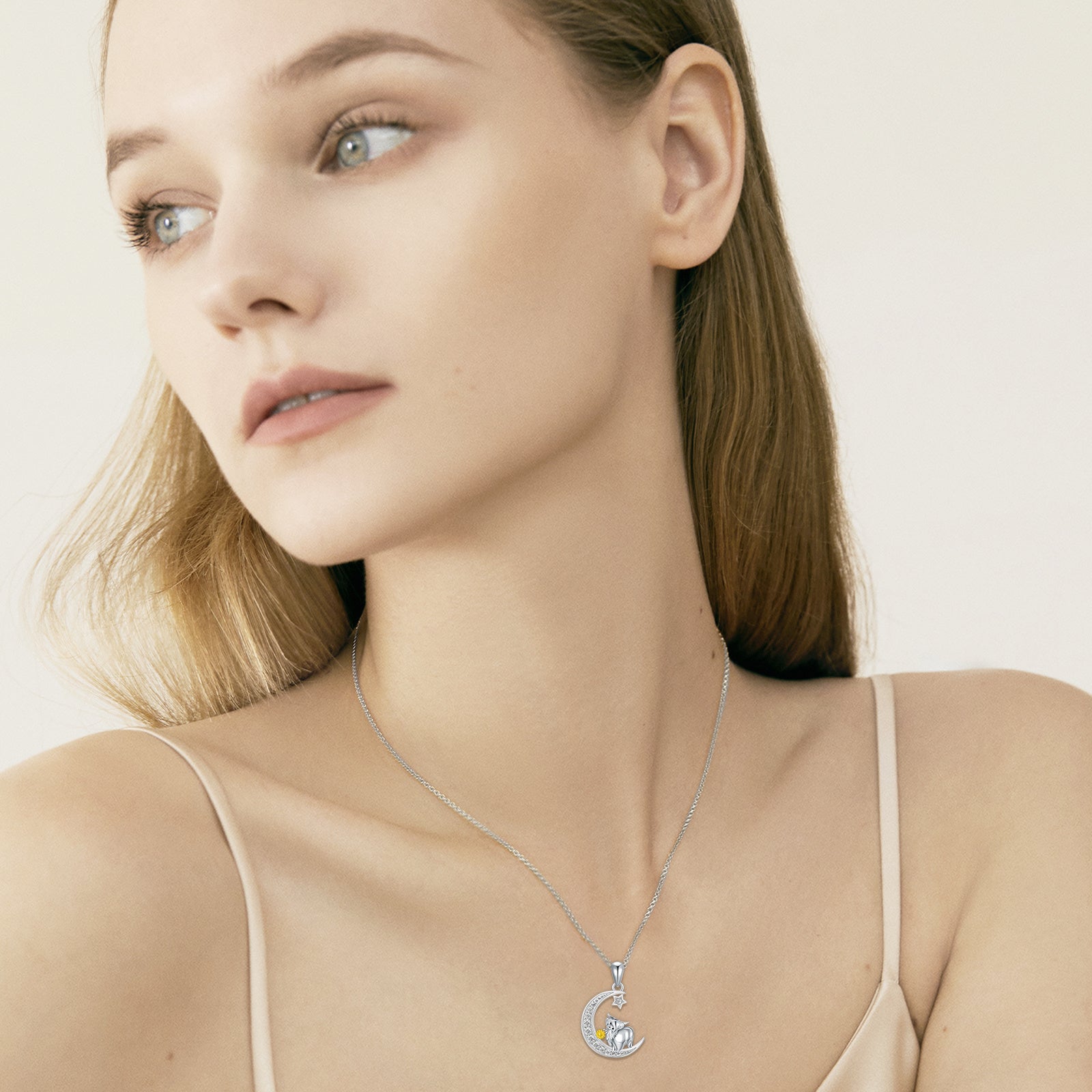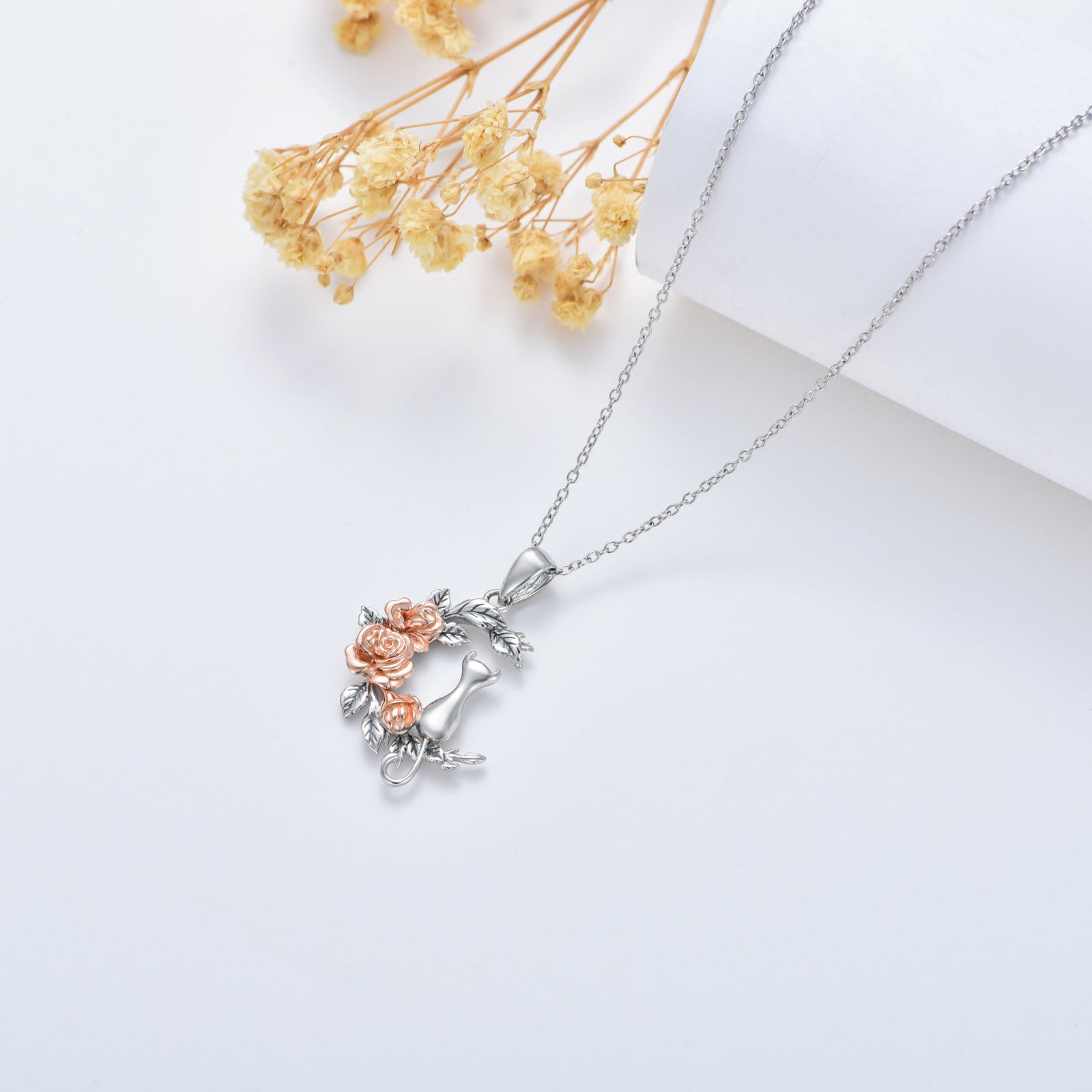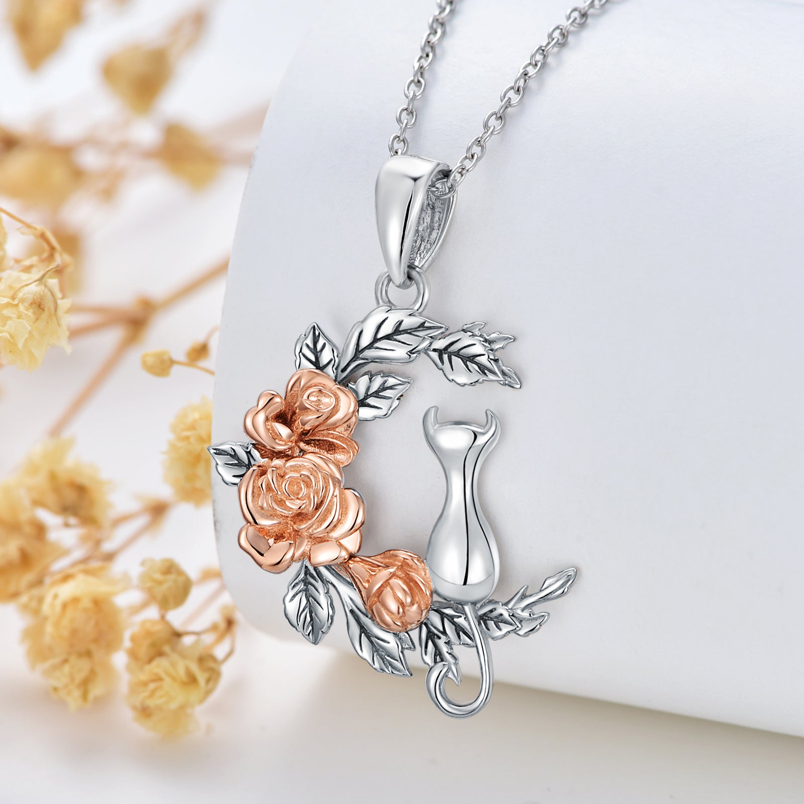 Cat Necklace Cat Rose Jewelry For Cat Lover Sterling Silver As Gifts For Women