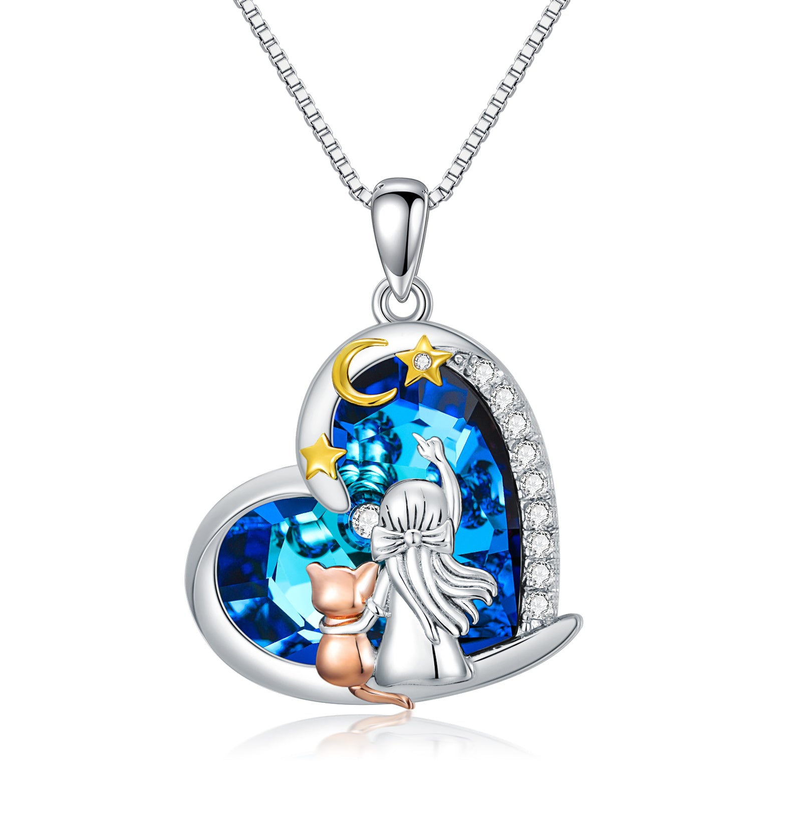 Sterling Silver Cow Heart Pendant Necklace For Women I Love You To The Moon And Back