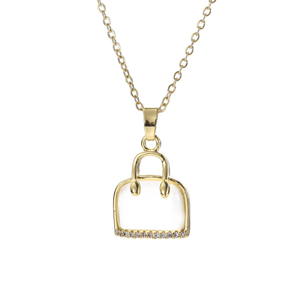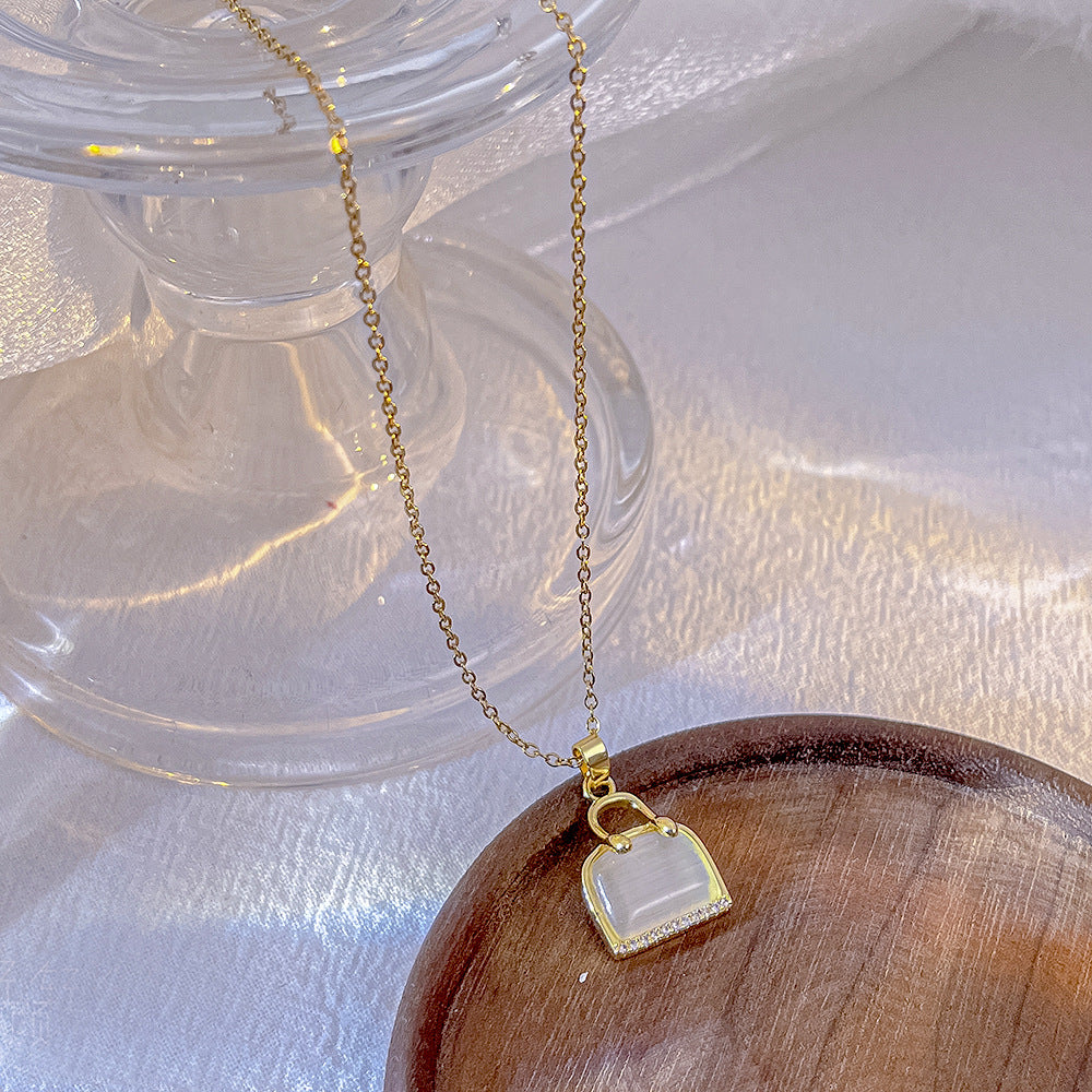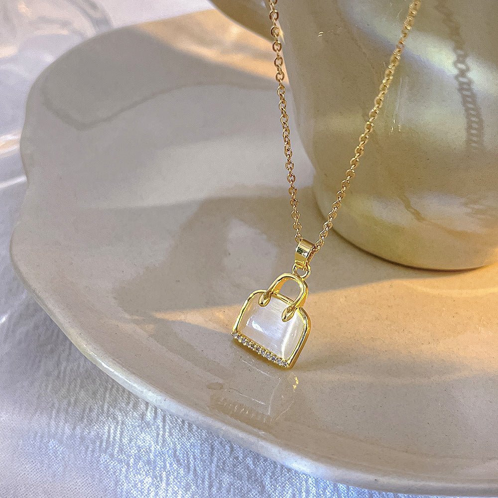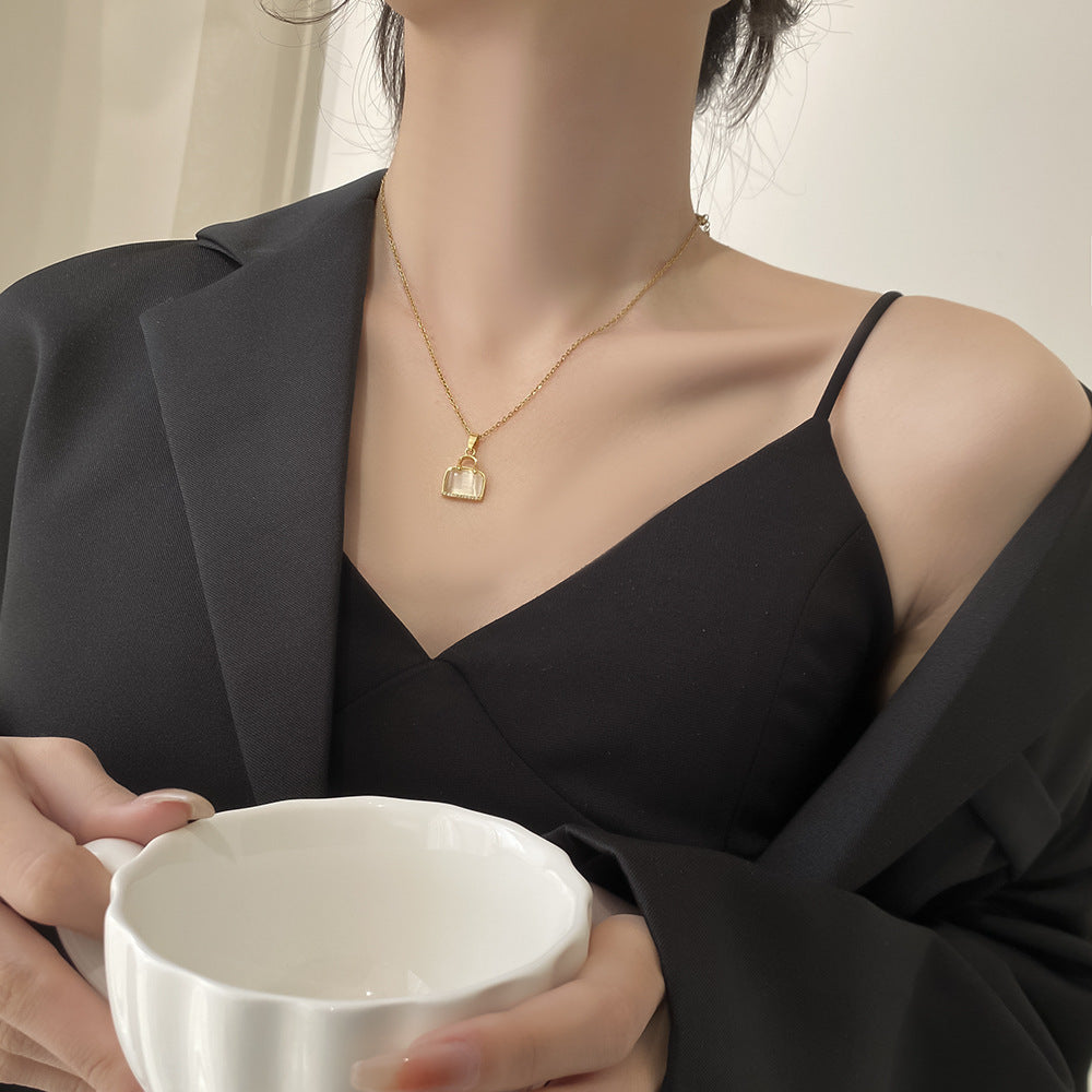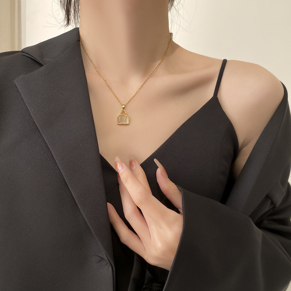 High End Egg White Stone Pendant With Titanium Steel Necklace For Women