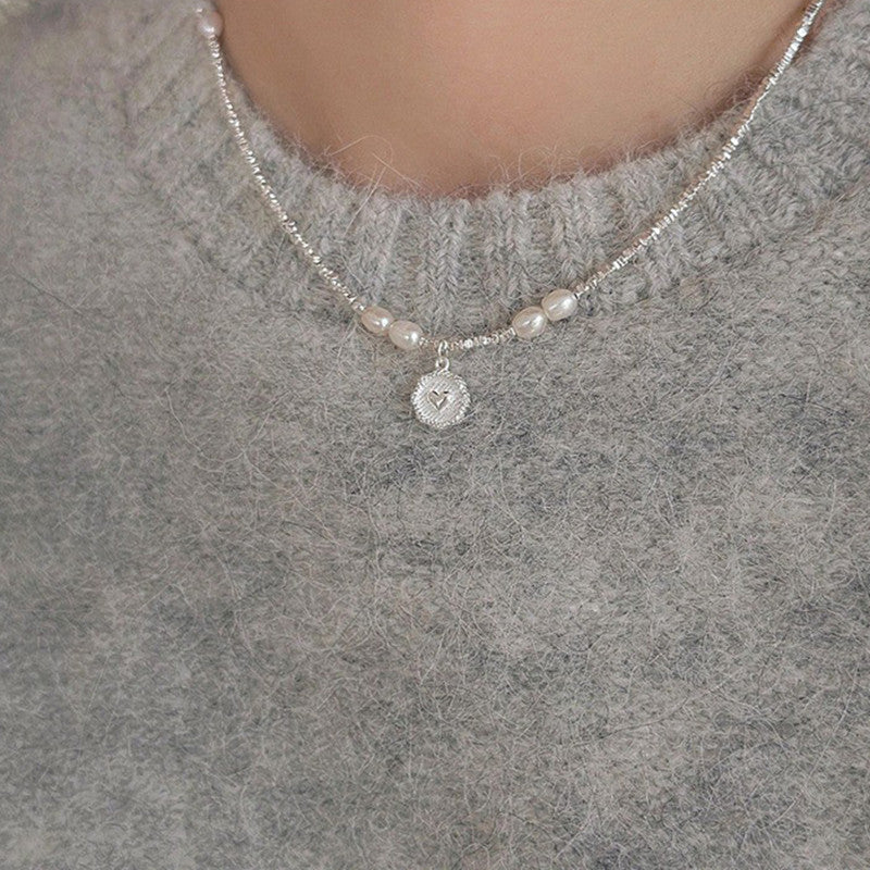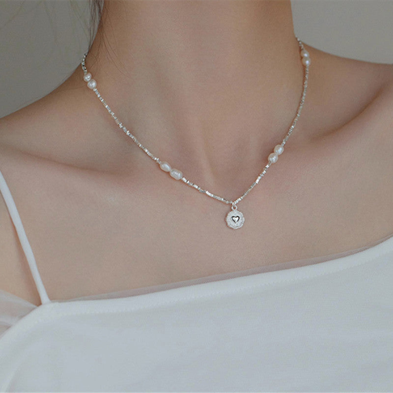 Women's Fashion Sterling Silver Heart Pearl Necklace