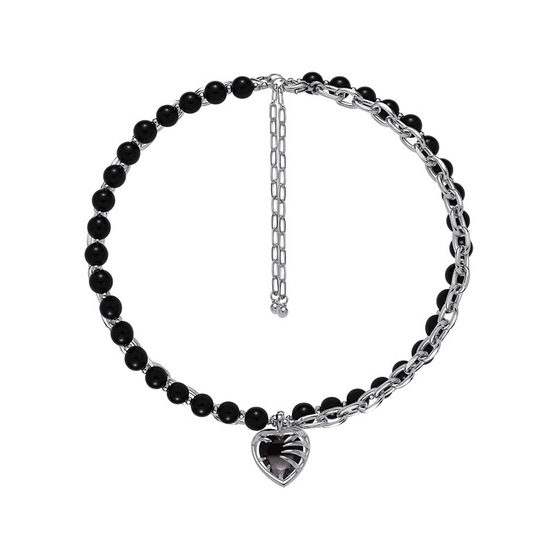 Women's Black Devil Heart Wings Necklace