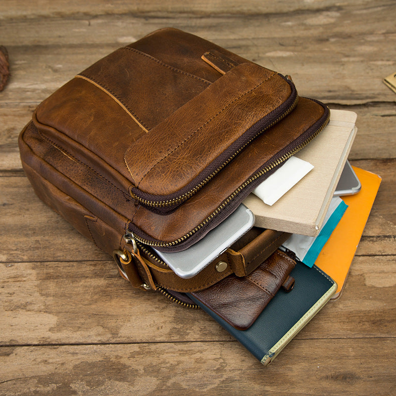 Crazy Horse Leather Retro Men's 8-Inch One-Shoulder Diagonal Bag