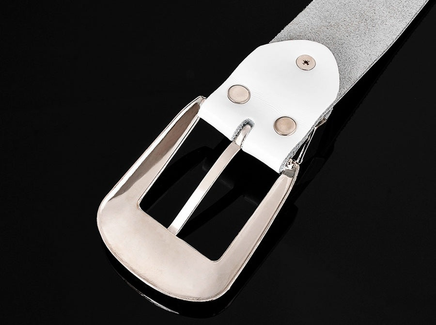 Leather Ladies Belt With Diamond-Studded Cowhide Pin Buckle