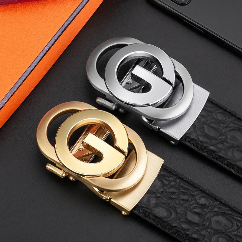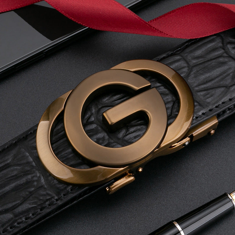 Pattern Men's Automatic Buckle Leather G-Buckle Top Layer Business Belt