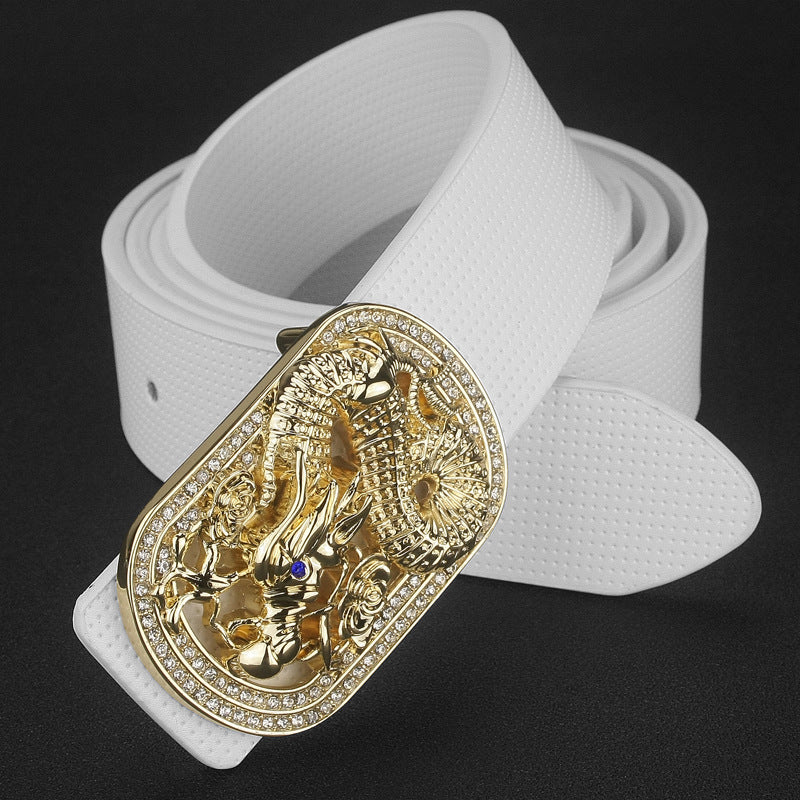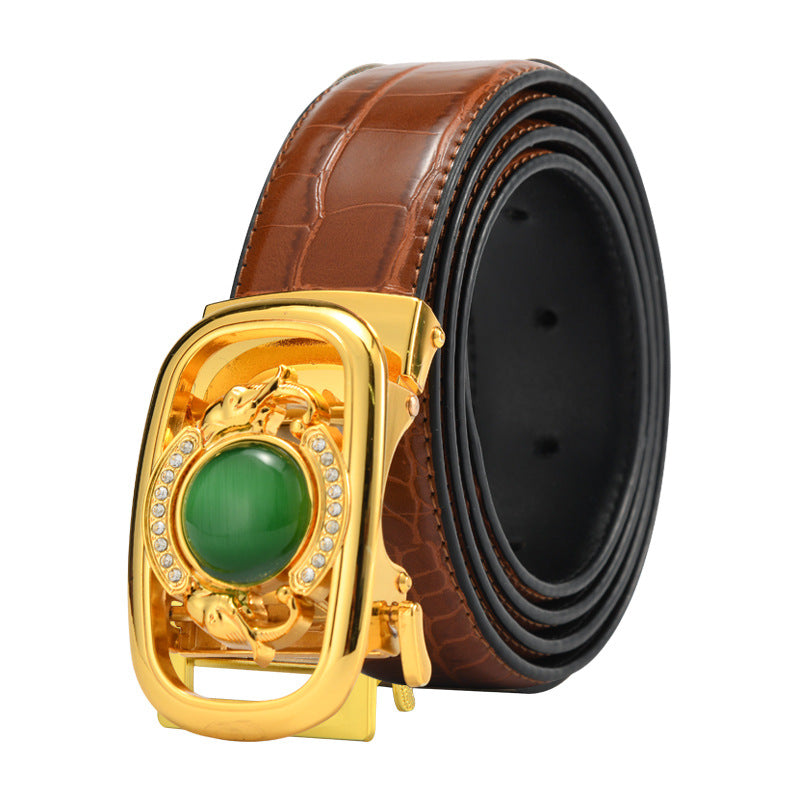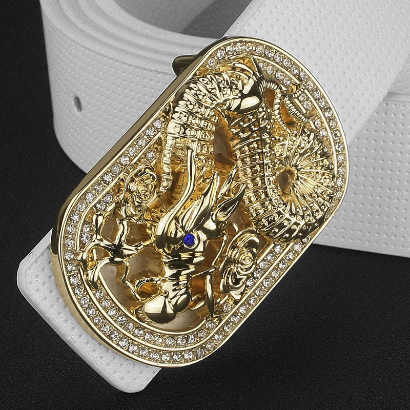 Jade Belly Pattern Alloy Diamond-Studded Automatic Buckle Belt
