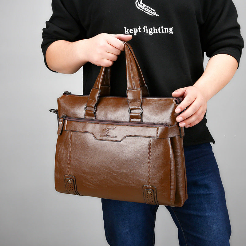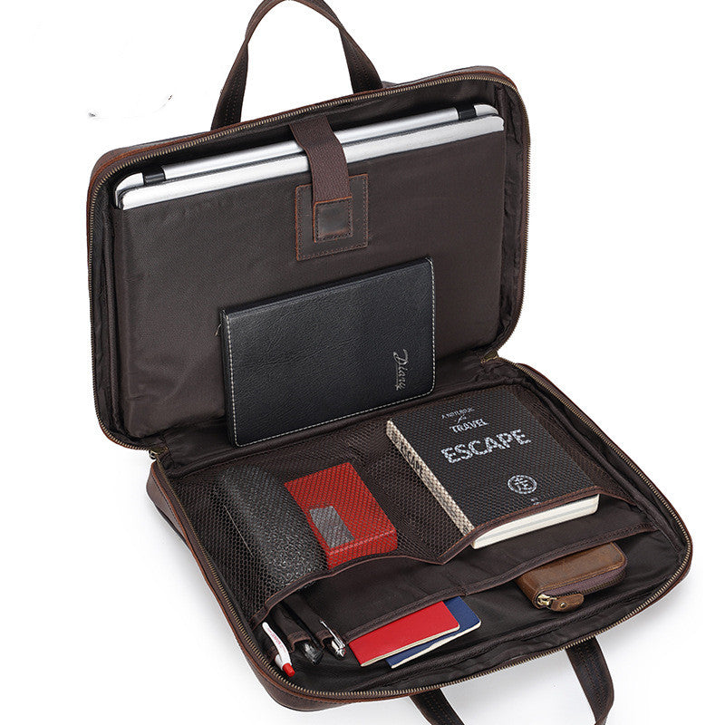 Horse Leather Men's Shoulder Bag Leather Laptop Men's Briefcase Portable
