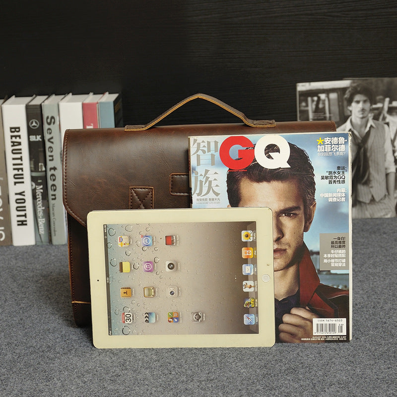 Vintage Business Leisure Horizontal Style Leather Briefcase Computer Bag