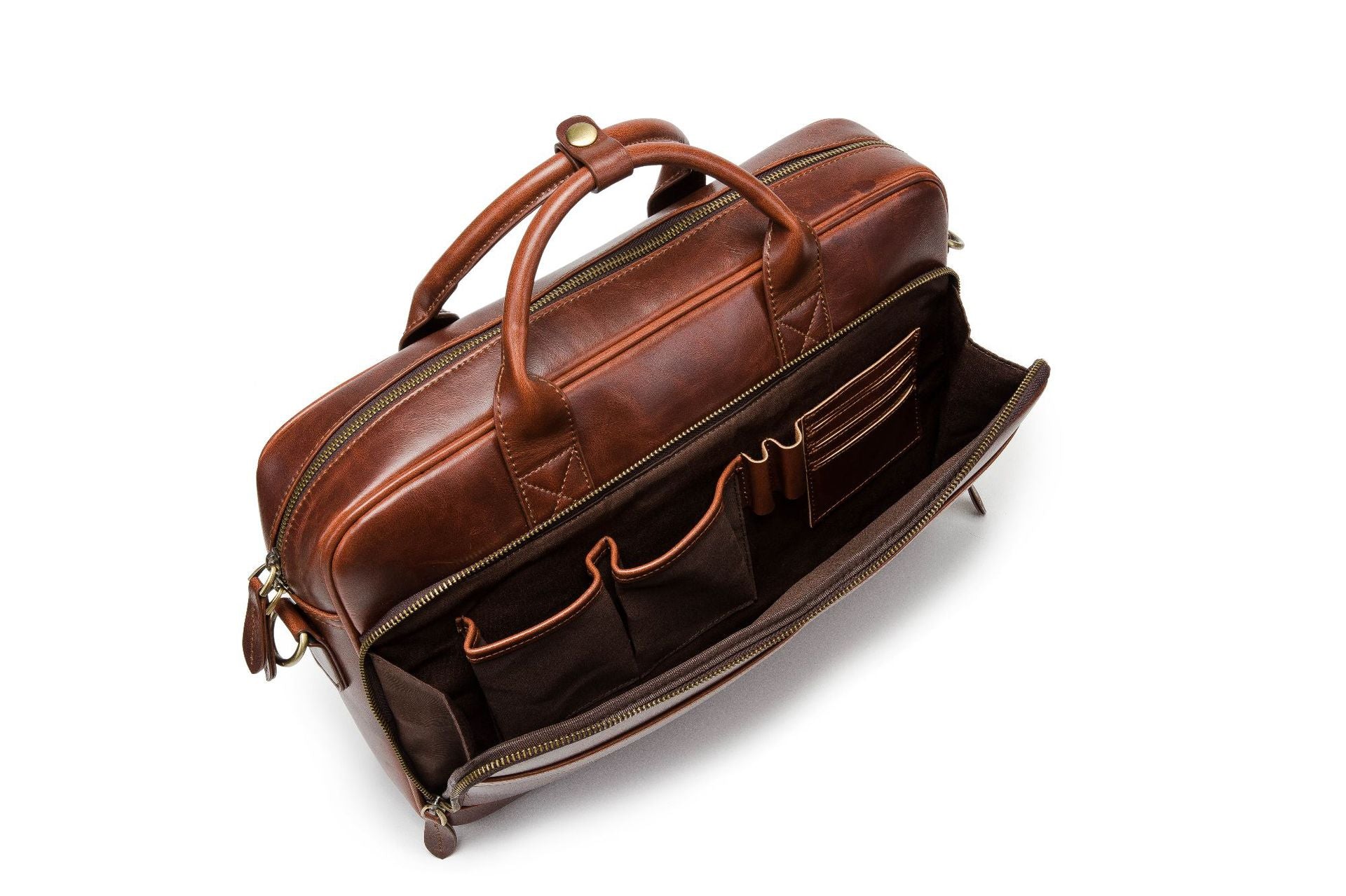 Men's Bag Crazy Horse Leather Briefcase For Laptop