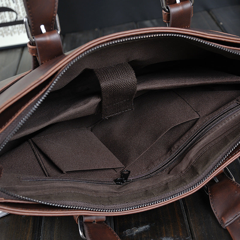 Retro Men's Portable Official Document Messenger Shoulder Bag Fashion Travel PU Leather