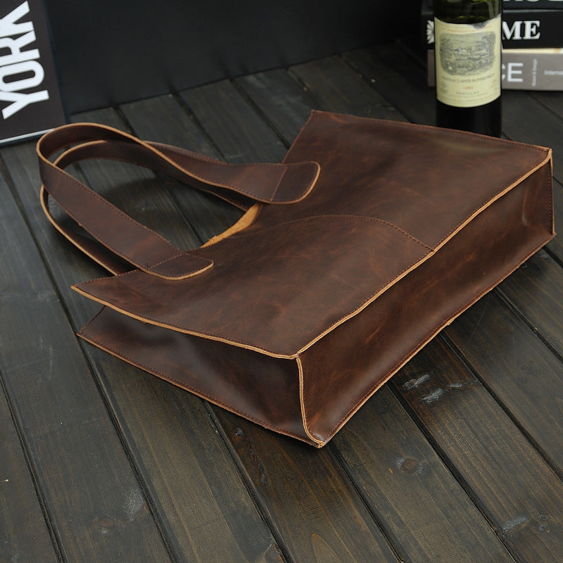 Crazy Horse Leather Retro Men's First Layer Cowhide Portable Briefcase