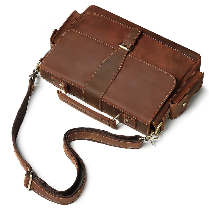 Retro Crazy Horse Leather Briefcase 14-Inch Commuter Business