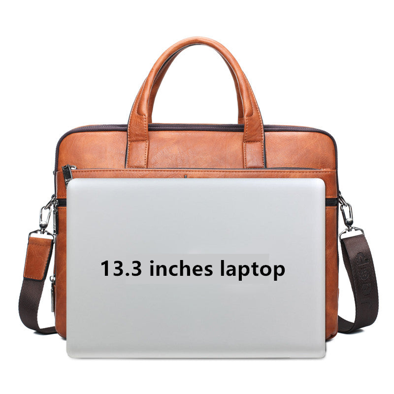 Men's Briefcase Business Casual First Layer Leather 14 Inch Portable