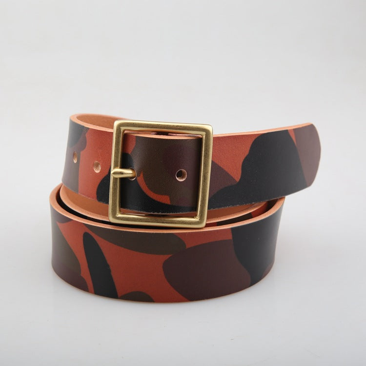 Camouflage Vegetable Tanned Leather Semi-Finished Belt Strip Without Hole Belt Strip