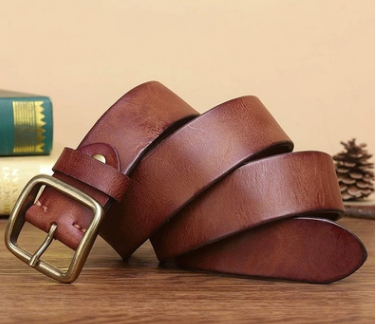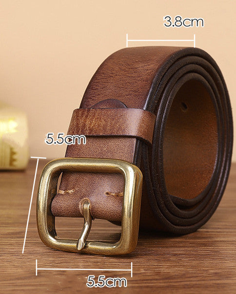 Leather Cowskin Vintage Jean Belt Pin Buckle Simple Men's Belt Wide