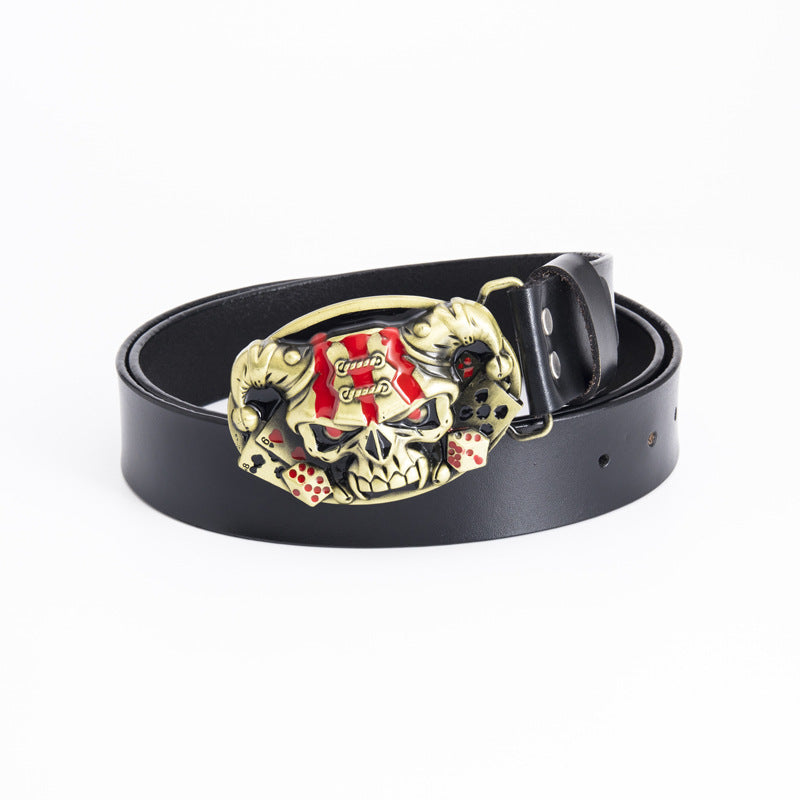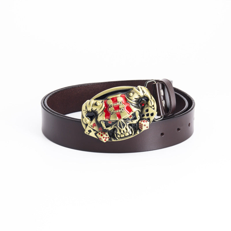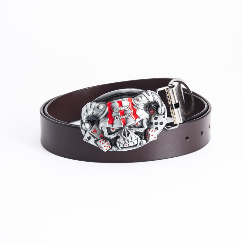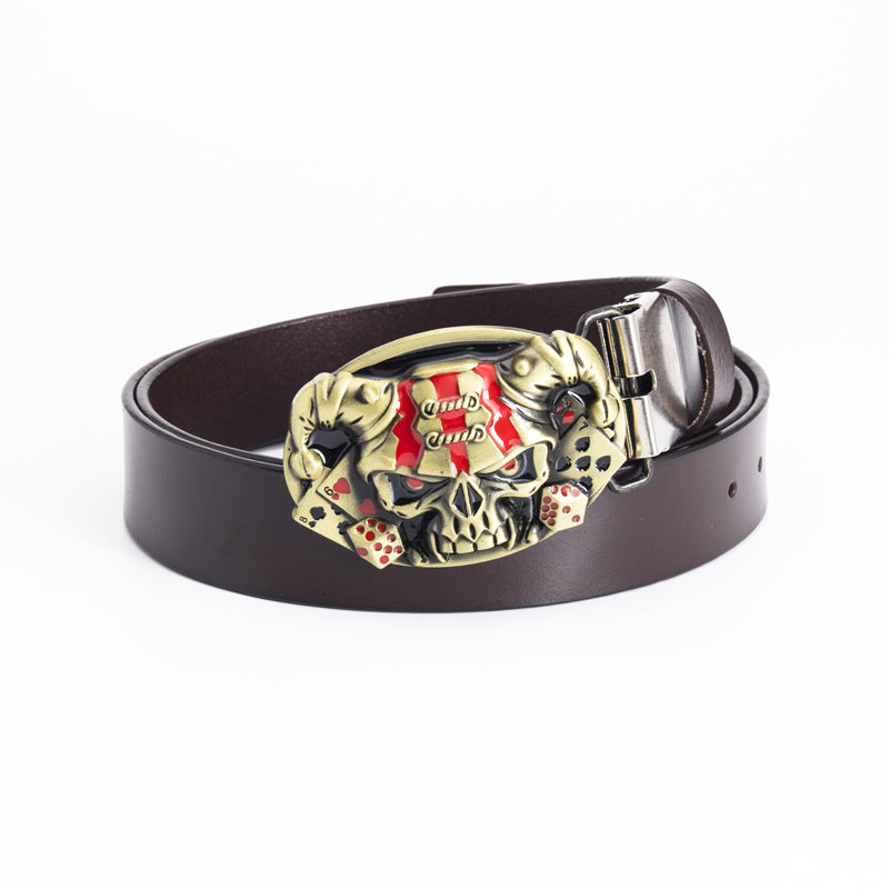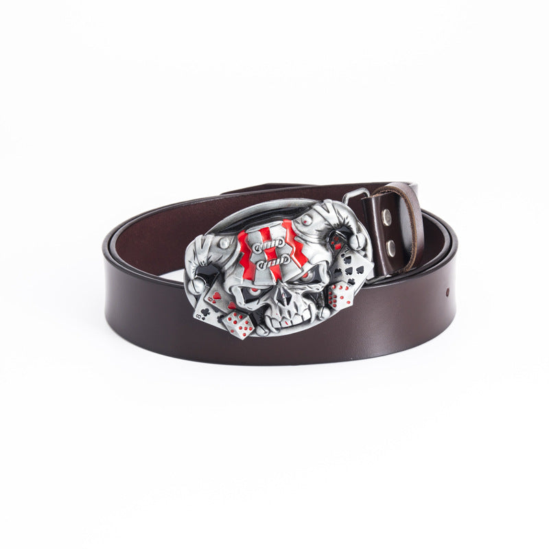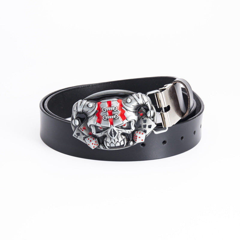 Automatic Buckle Leather With Diamond-Studded Pattern Bull Head Belt