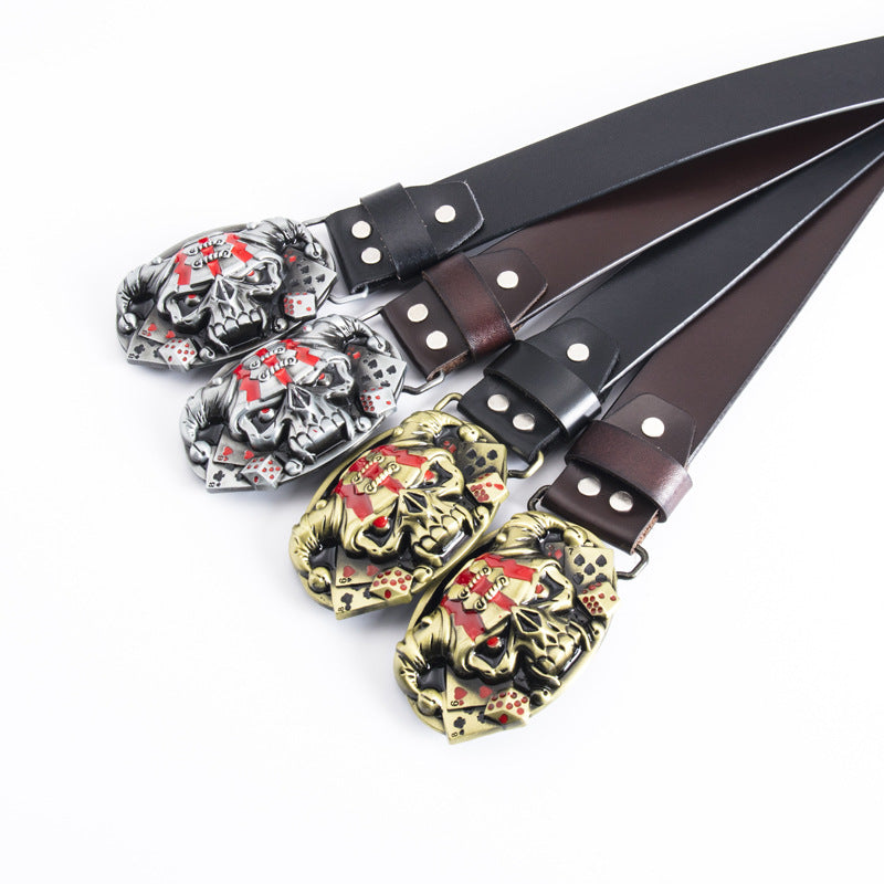 Tang Grass Pattern Horse Head Western Bus Leather Carving Belt Buckle Locomotive Fashion Belt