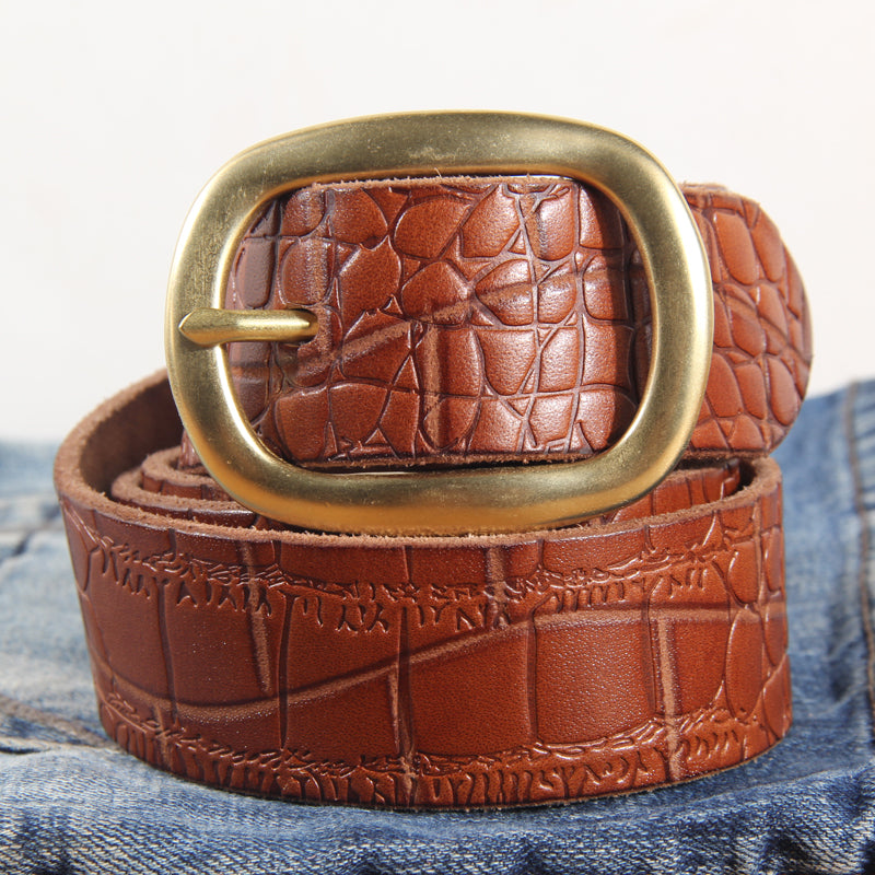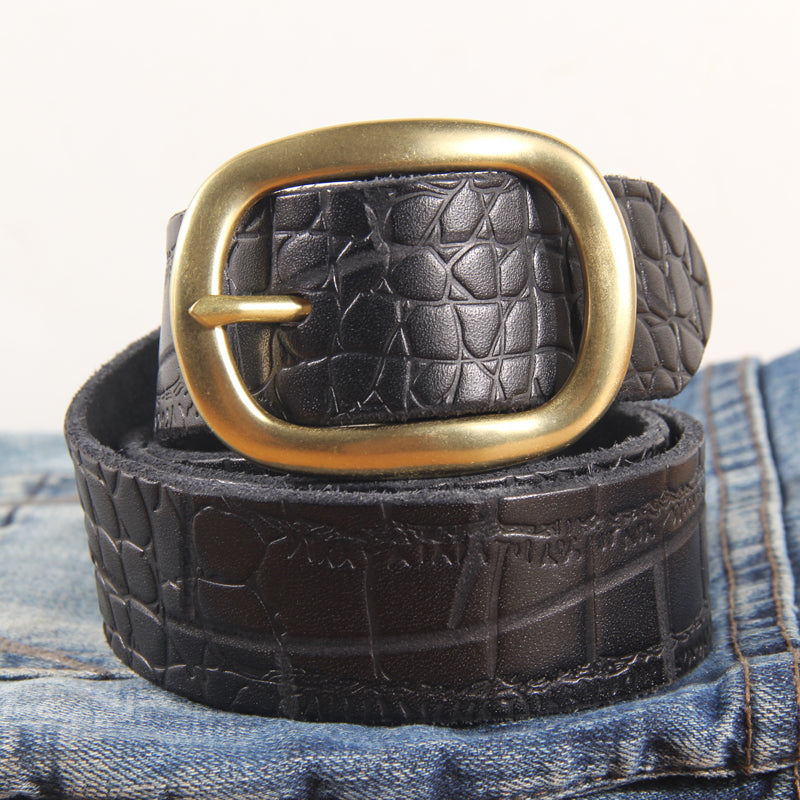 Men's Buckle Jeans Cowhide Leather Belt