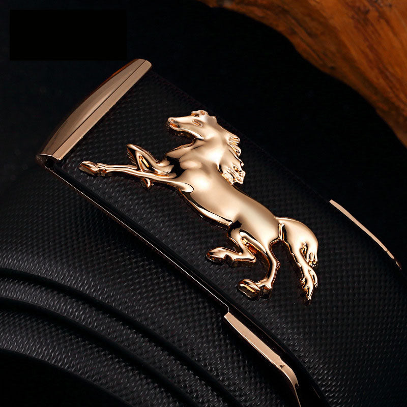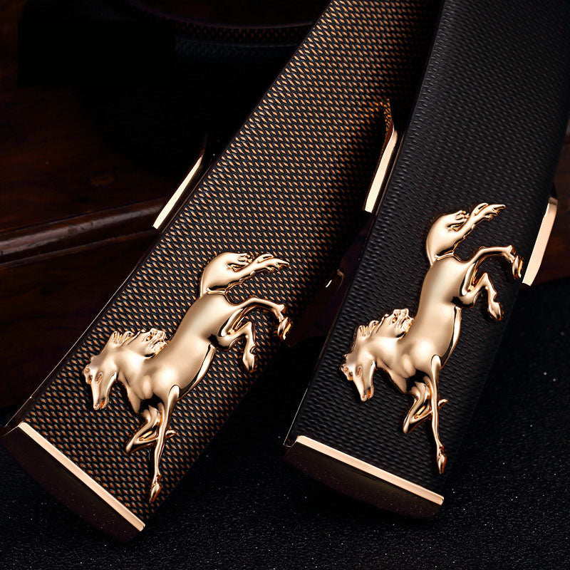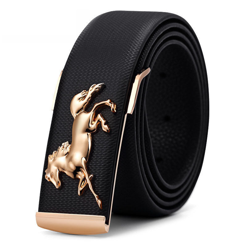 Men's Plate Belt Leather High-End 3D Golden Horse Smooth Inner Buckle