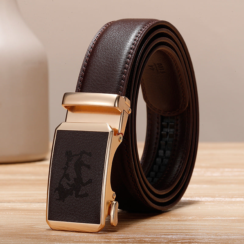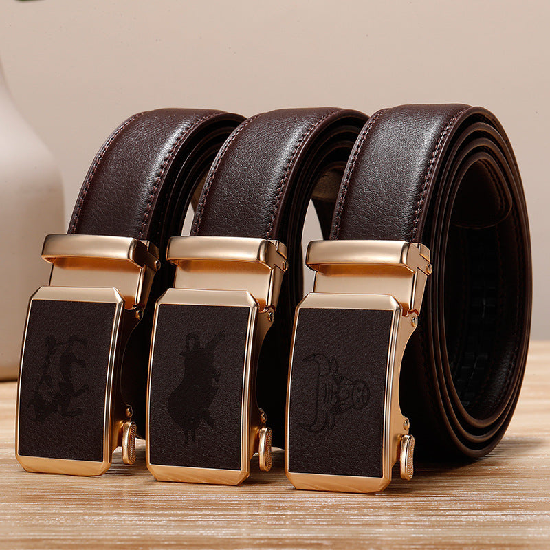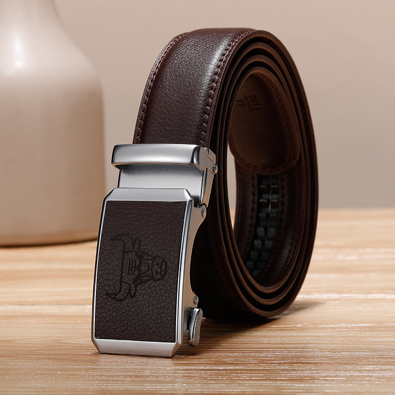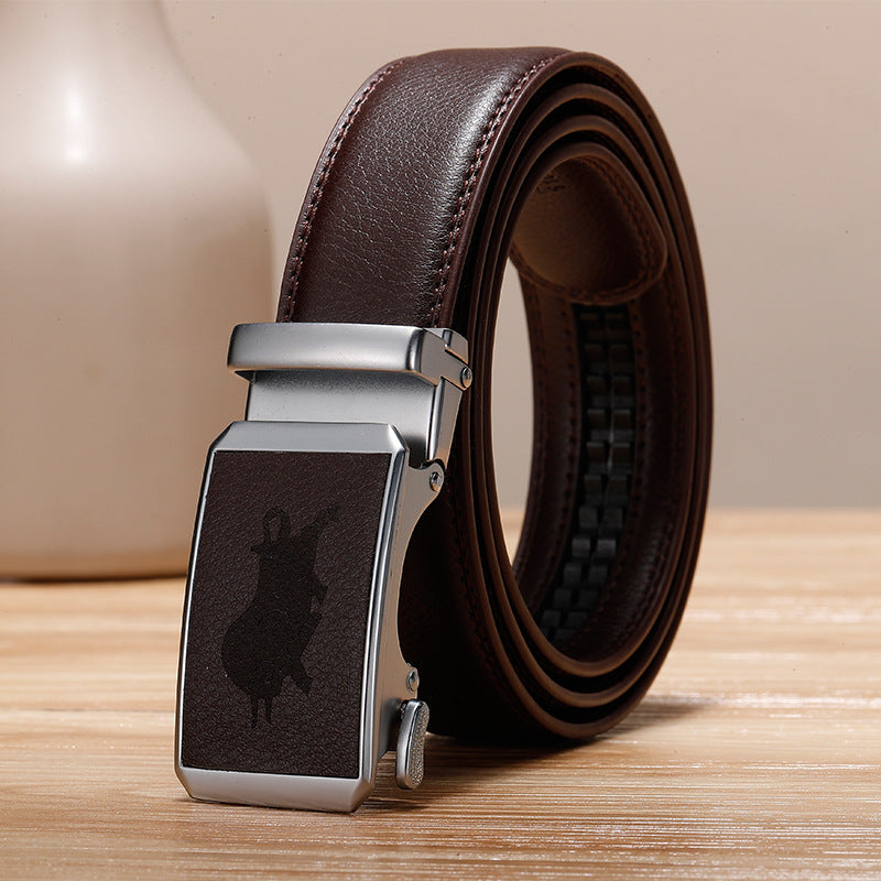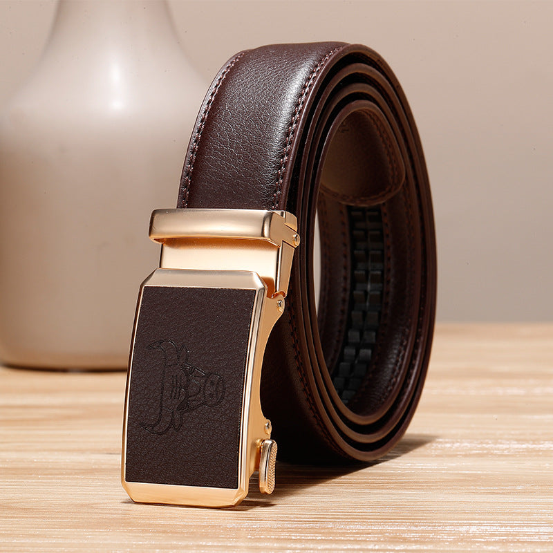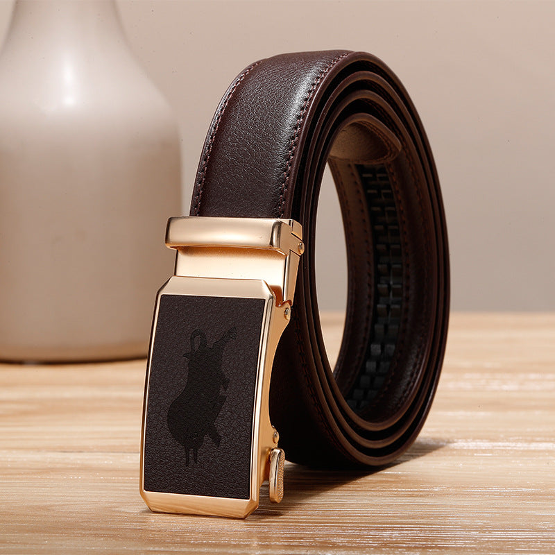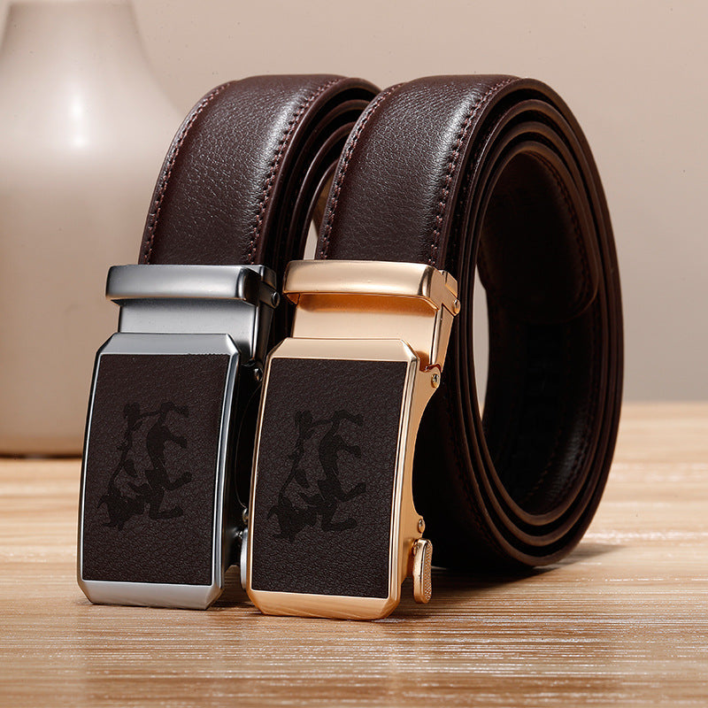 Genuine Leather Cowhide Belt With Automatic Buckle Belt