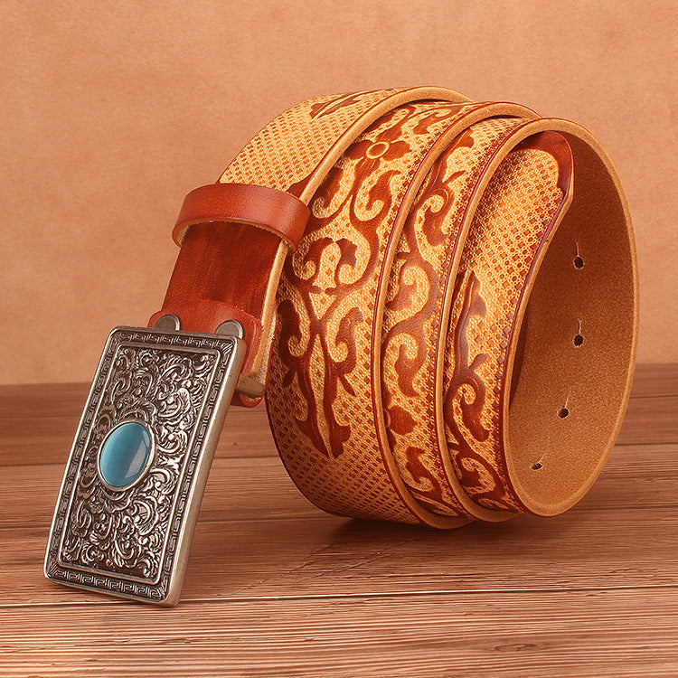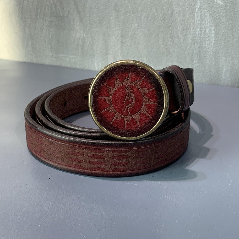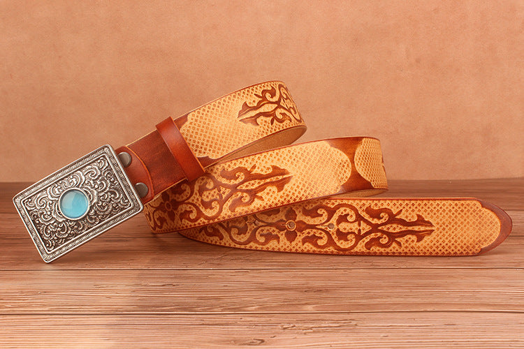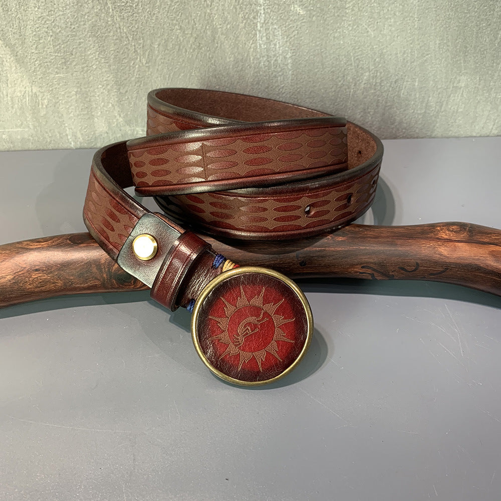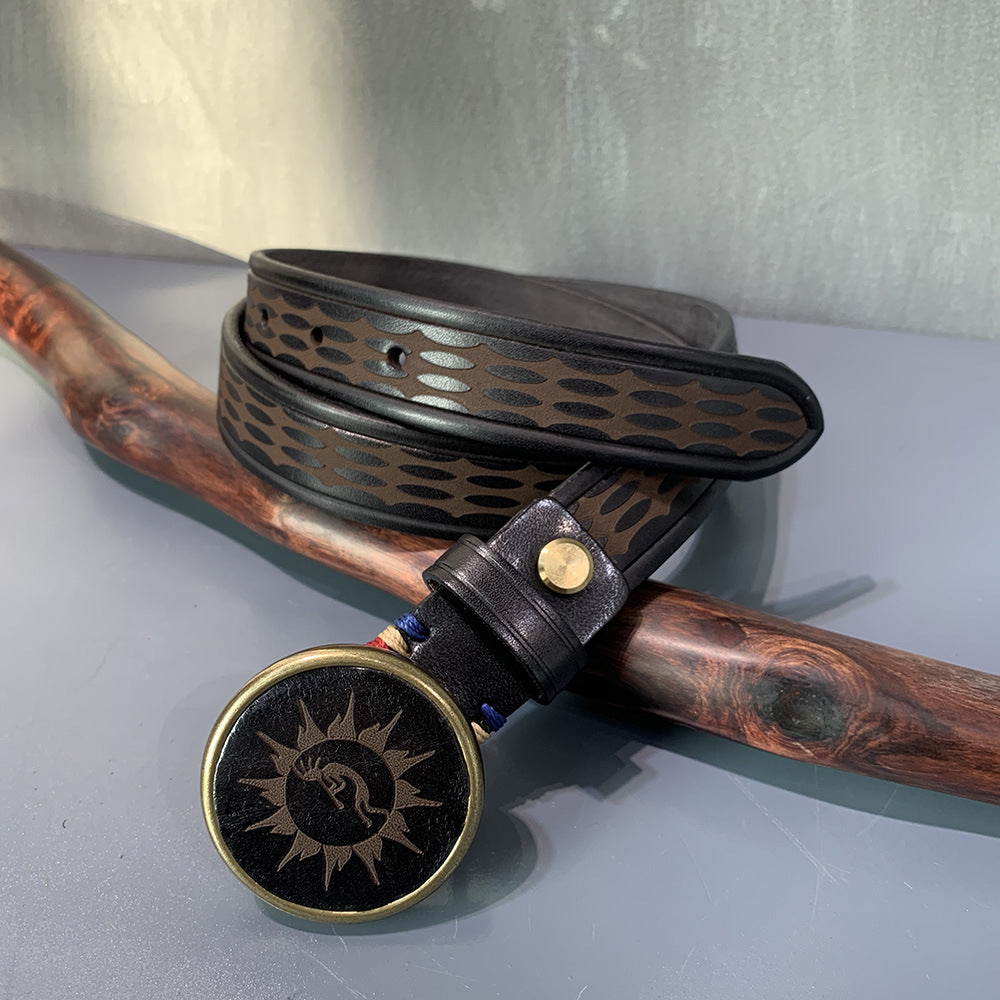 Ethnic Style Carved Leather Belt Head Layer Cowhide Personality Smooth Buckle