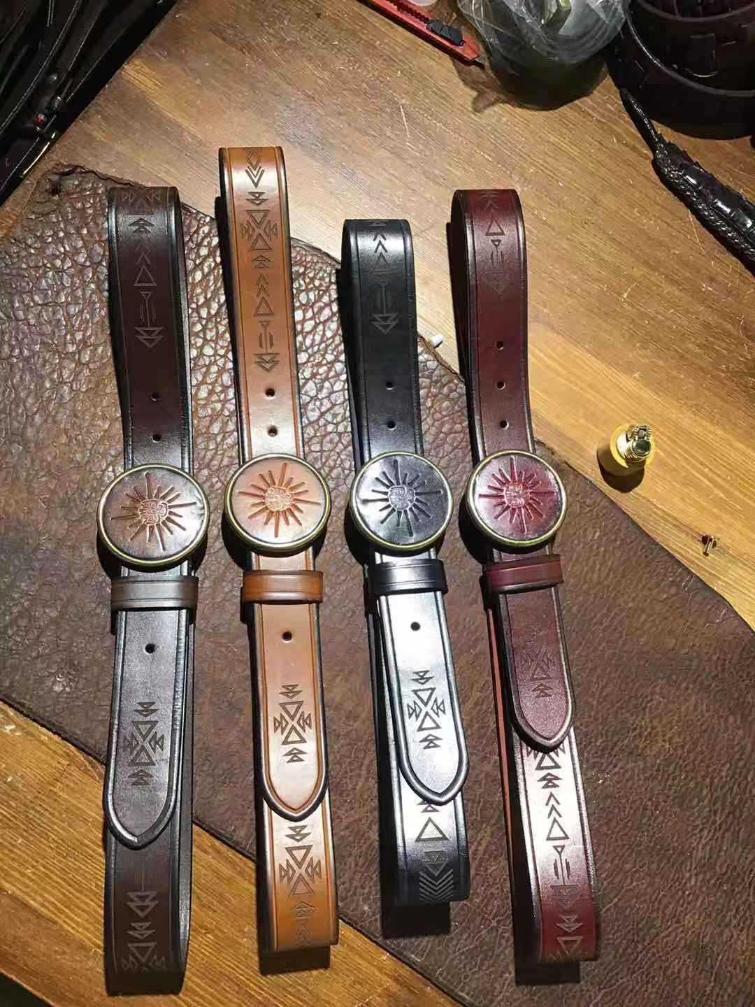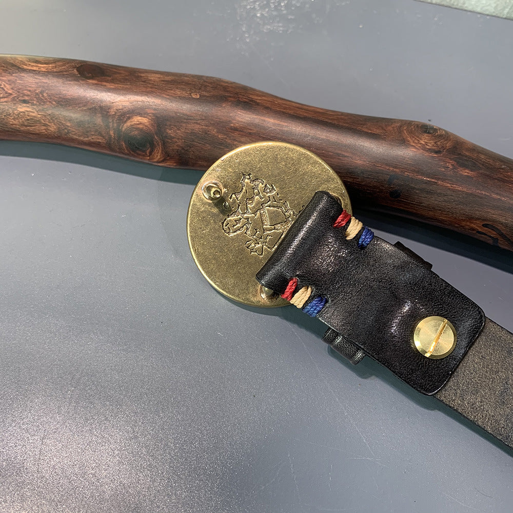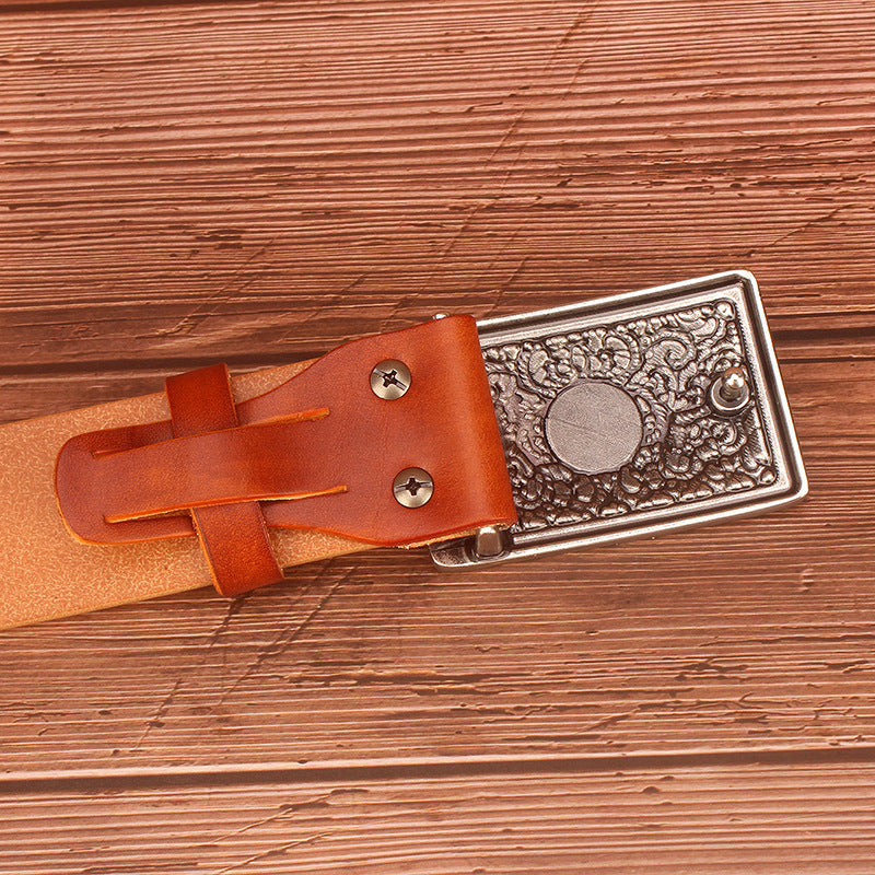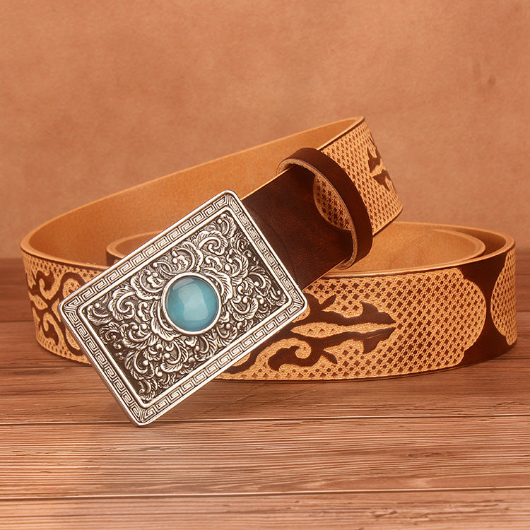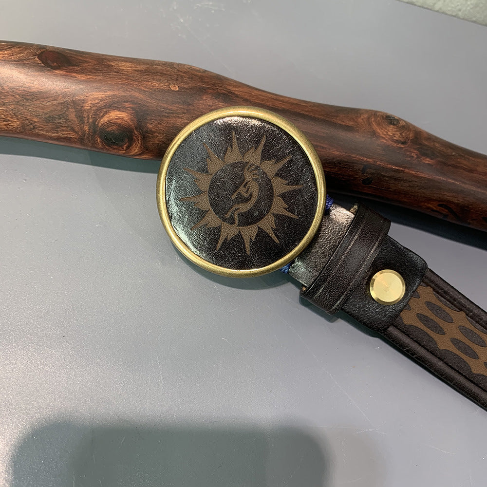 Ethnic Style Carved Leather Belt Head Layer Cowhide Personality Smooth Buckle