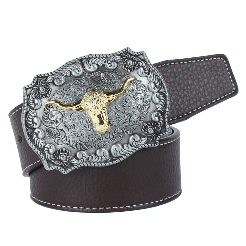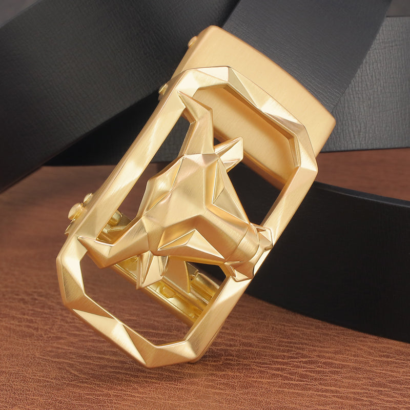 Bull Head Belt Men's Leather Automatic Buckle Without Holes