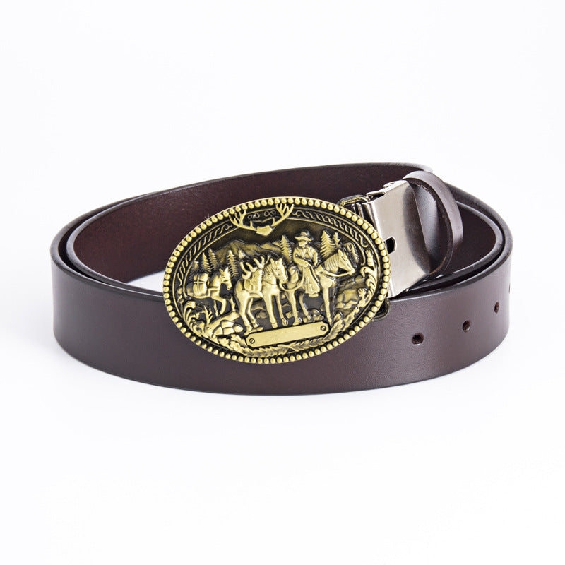 Pin Buckle Head Layer Pure Genuine Leather Casual Retro Hand Student Belt