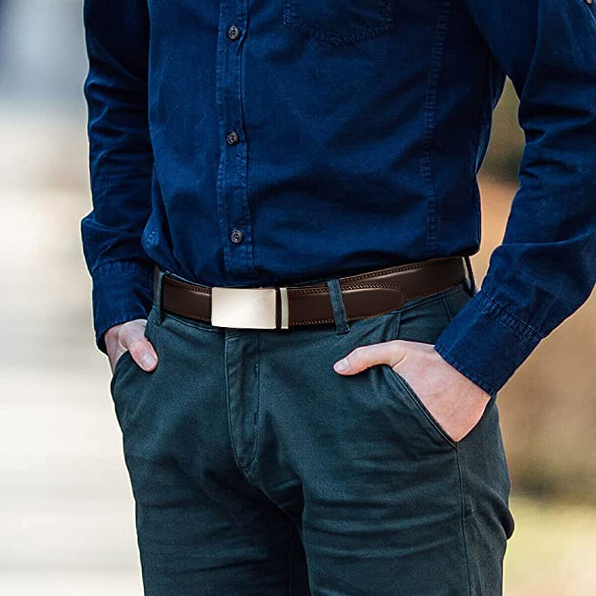 Microfiber Leather Mens Ratchet Belt Belts For Men Adjustable Automatic Buckle Dark Brown