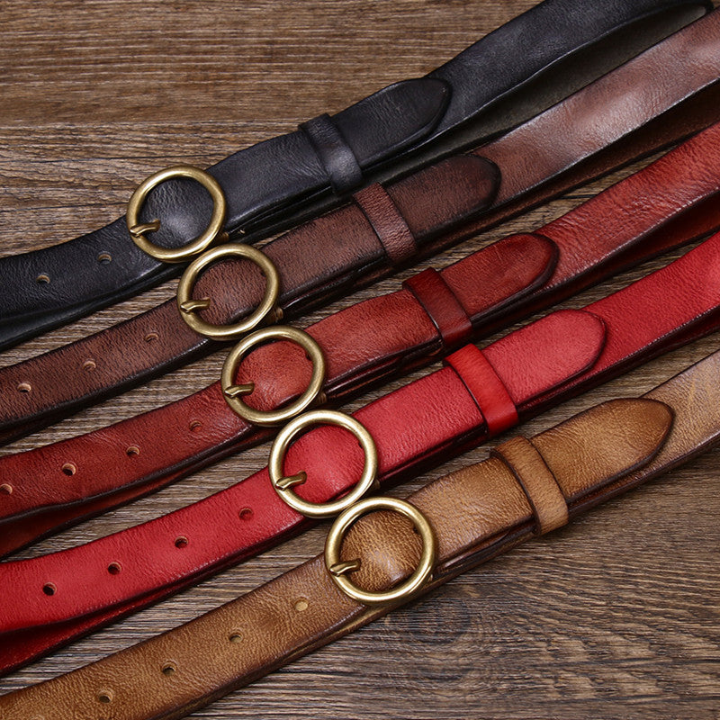 Women's Fashion Leather Jeans Belt With Brass Buckle