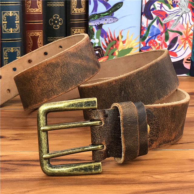 Retro Style Belt Men's Genuine Cattlehide Leather Surface Brass Buckle Denim Overalls Belt