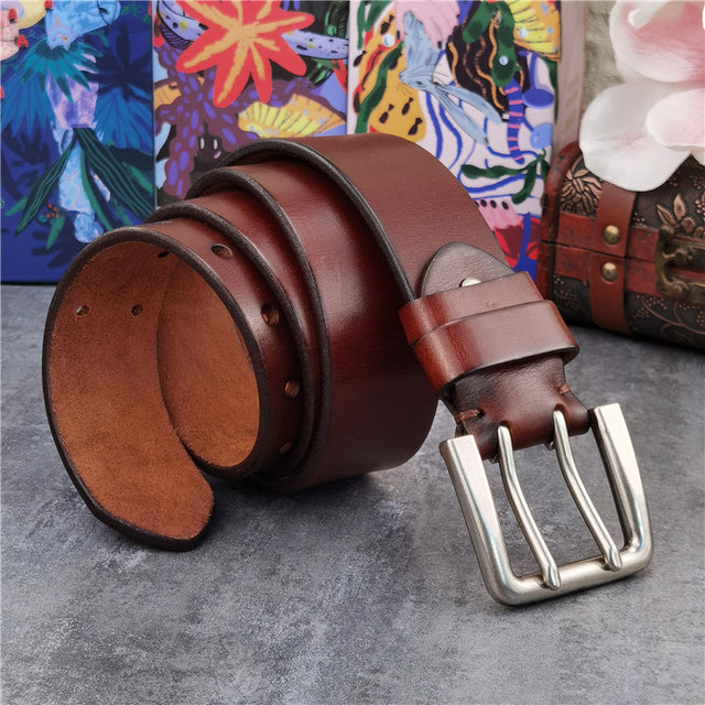 Washed-Out Vintage First Layer Cow Leather Pin Buckle Jeans Belt