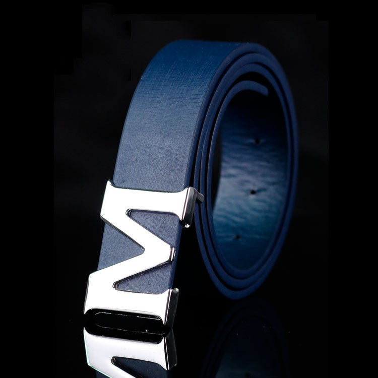 Men's Style Letter M Smooth Buckle Casual Pants Youth Belt Pure White