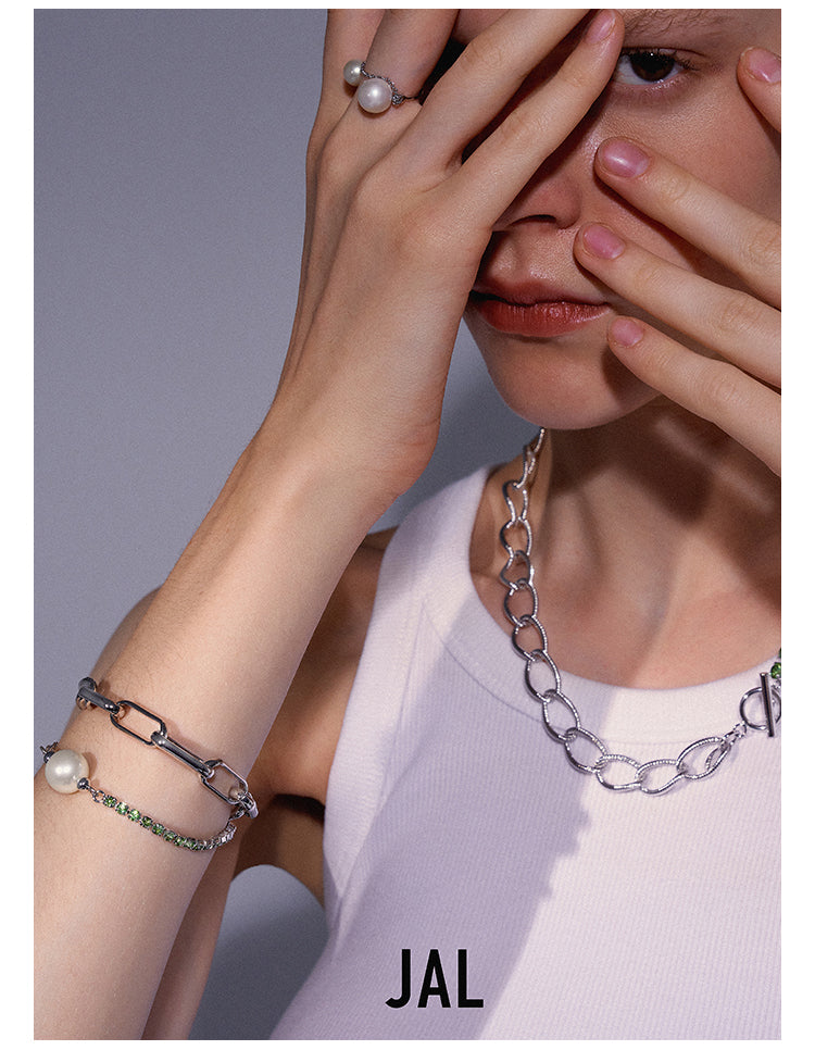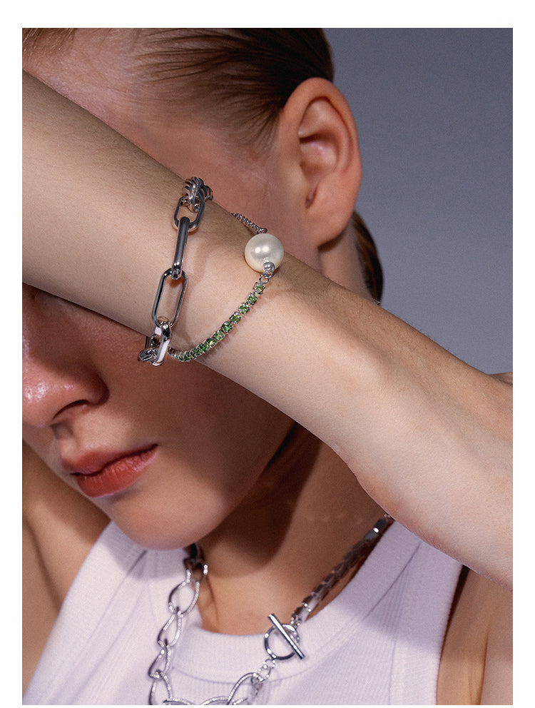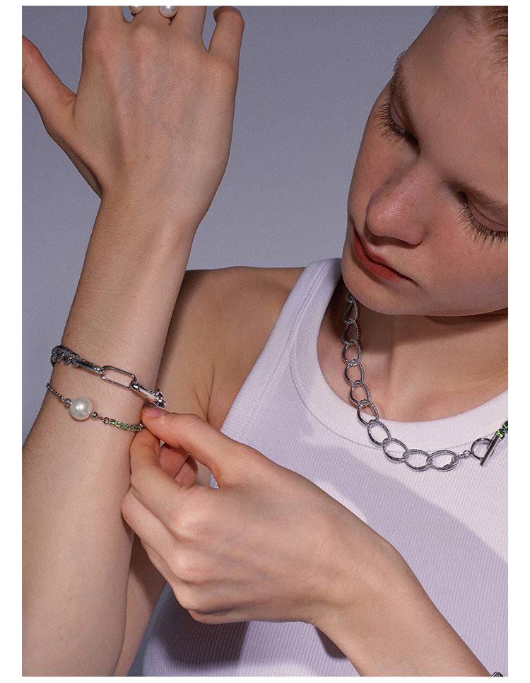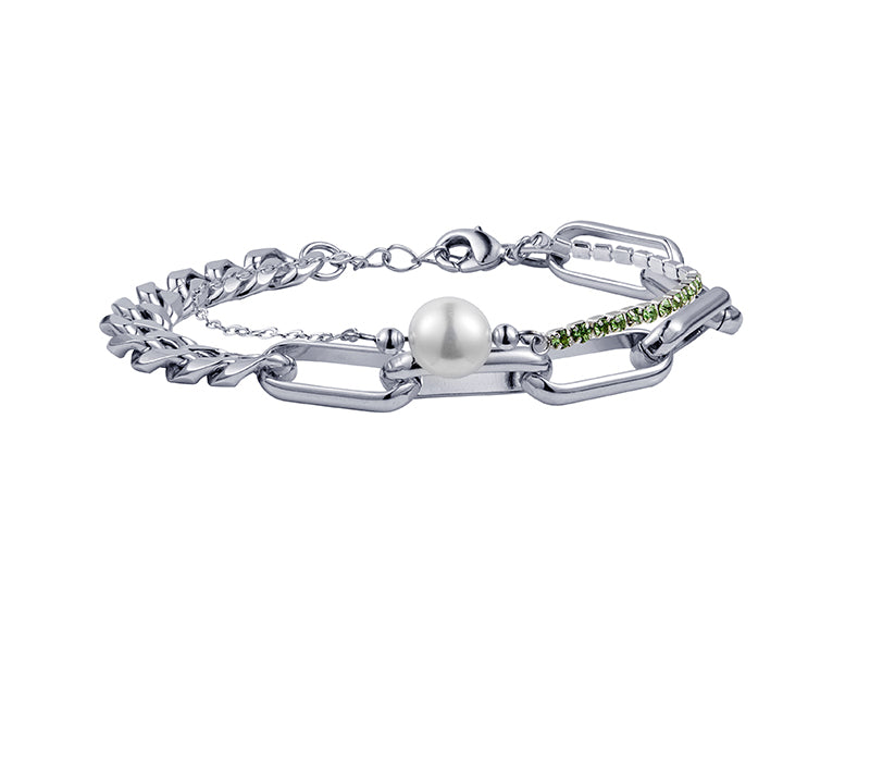White Gold Plated Pearl Riding Whip Chain Stitching Bracelet Bracelet